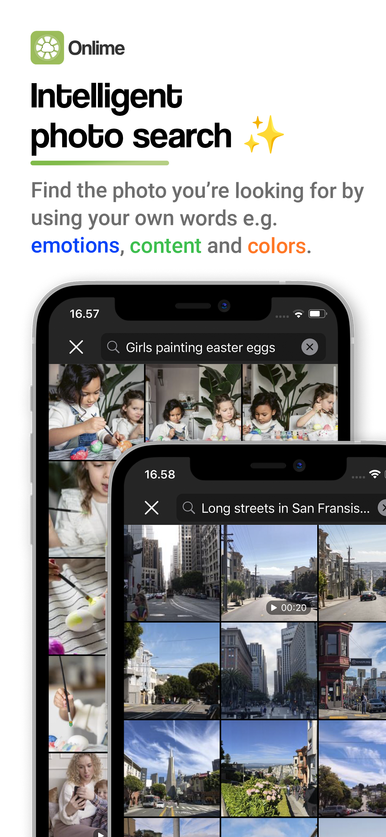 • PICTURE ORGANIZATION: View your photos and videos in one timeline – photos and videos are automatically uploaded and organized from all your devices using Onlime apps.