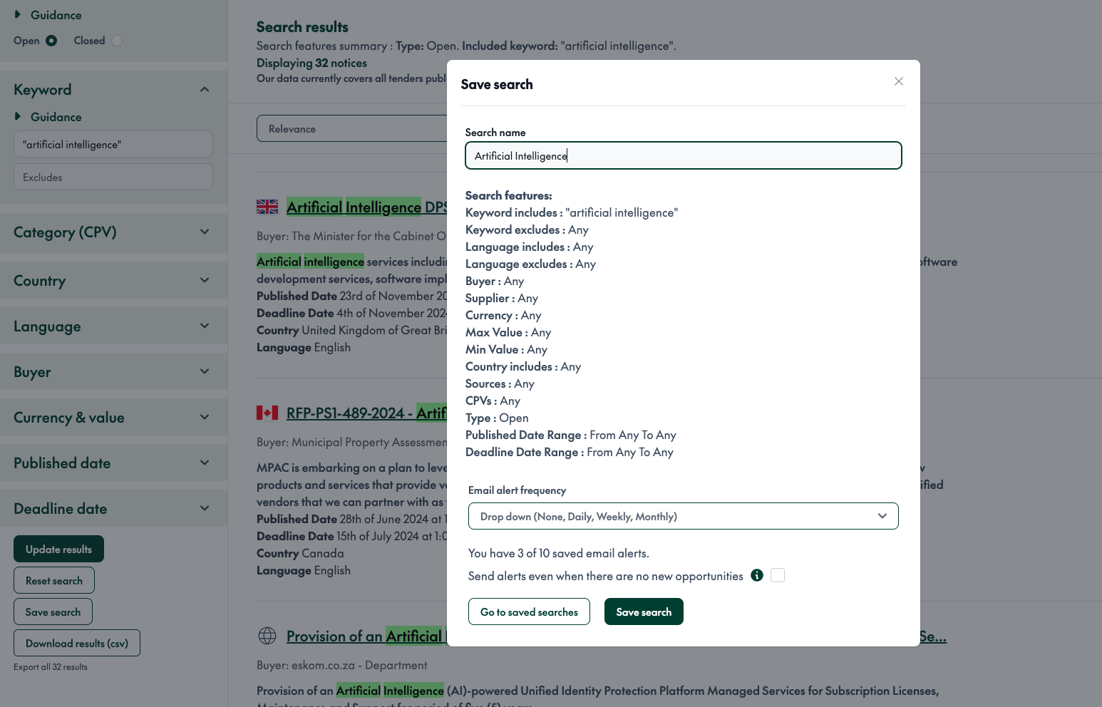 Build your campaign in less than a minute. Tell AnyBiz what you want to sell in a few simple words, choose where do you want to sell it around the world, and to what type of clients.