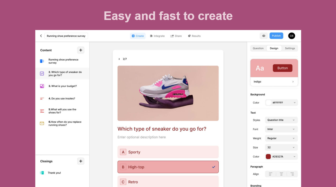 - Customize everything, from color themes, fonts, and buttons to match your brand style.