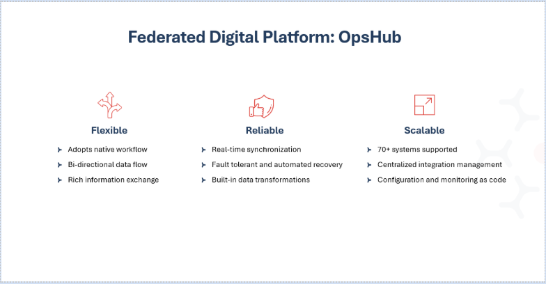 Common use cases include connecting engineering and IT service management platforms, synchronizing product lifecycle data across development tools, supporting collaboration between internal teams and external partners, and enabling consolidated reporting across multiple systems among others.