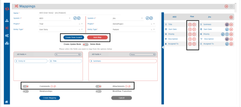 3) Codeless integration configuration: Configure integrations (on premises, in a customer’s, or in OpsHub’s secure cloud) through a GUI without writing code. Code only for custom business use cases not standard.