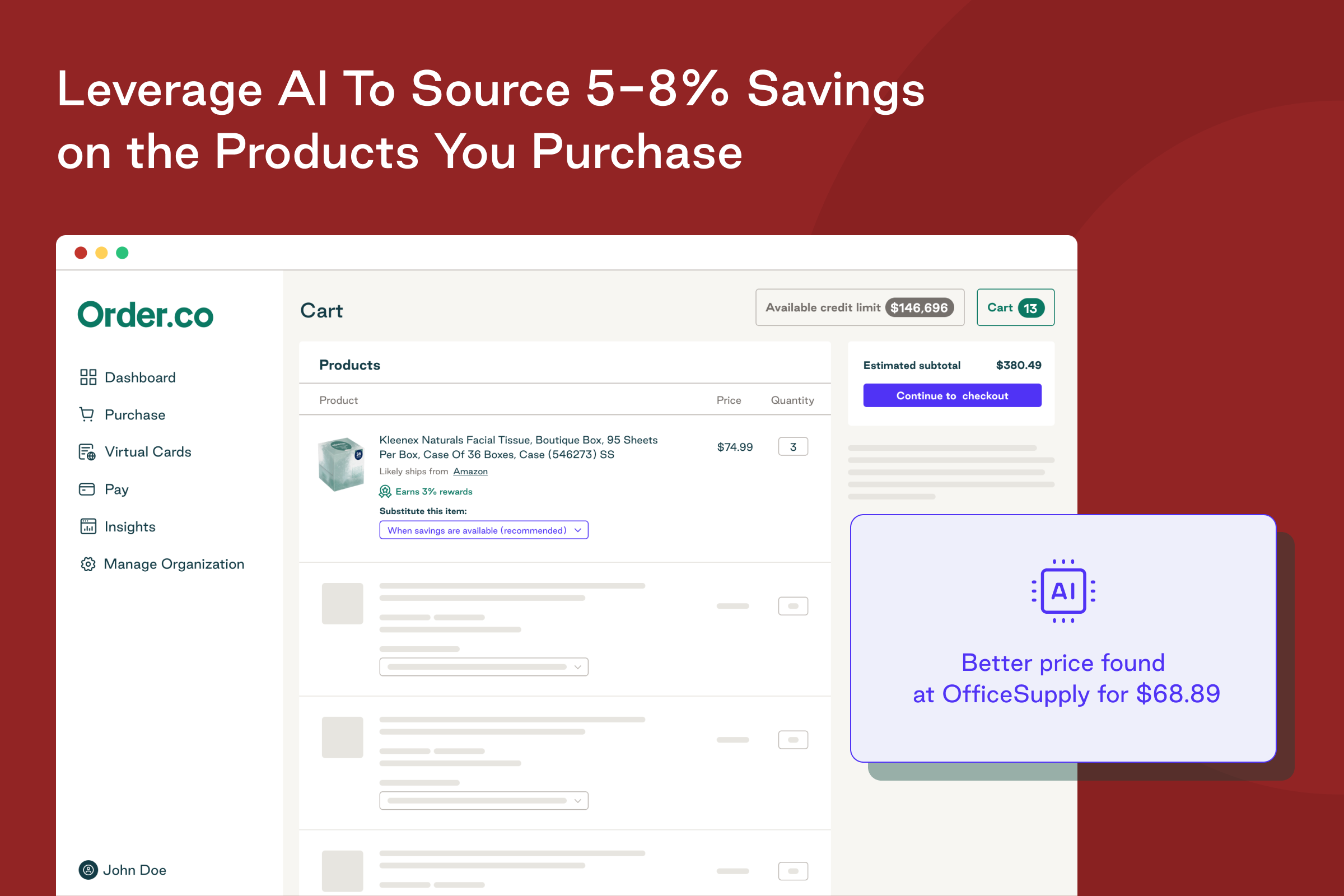 I really appreciate Order.co for its user-friendly interface, which makes navigation intuitive and shopping a seamless experience. The platform's shopability allows me to manage supplies and orders with ease. Another aspect that stands out is the level of customization available, which is exceptional and enhances the overall user experience. Order.co effectively streamlines the ordering process by consolidating billing and accounting for supplies from over 20 vendors into one accessible place. This integration provides me with valuable oversight and reporting capabilities, assisting in budget management and aiding field leaders to remain informed. The system’s ability to enhance efficiency across complex logistical operations is particularly beneficial. Review collected by and hosted on G2.com.