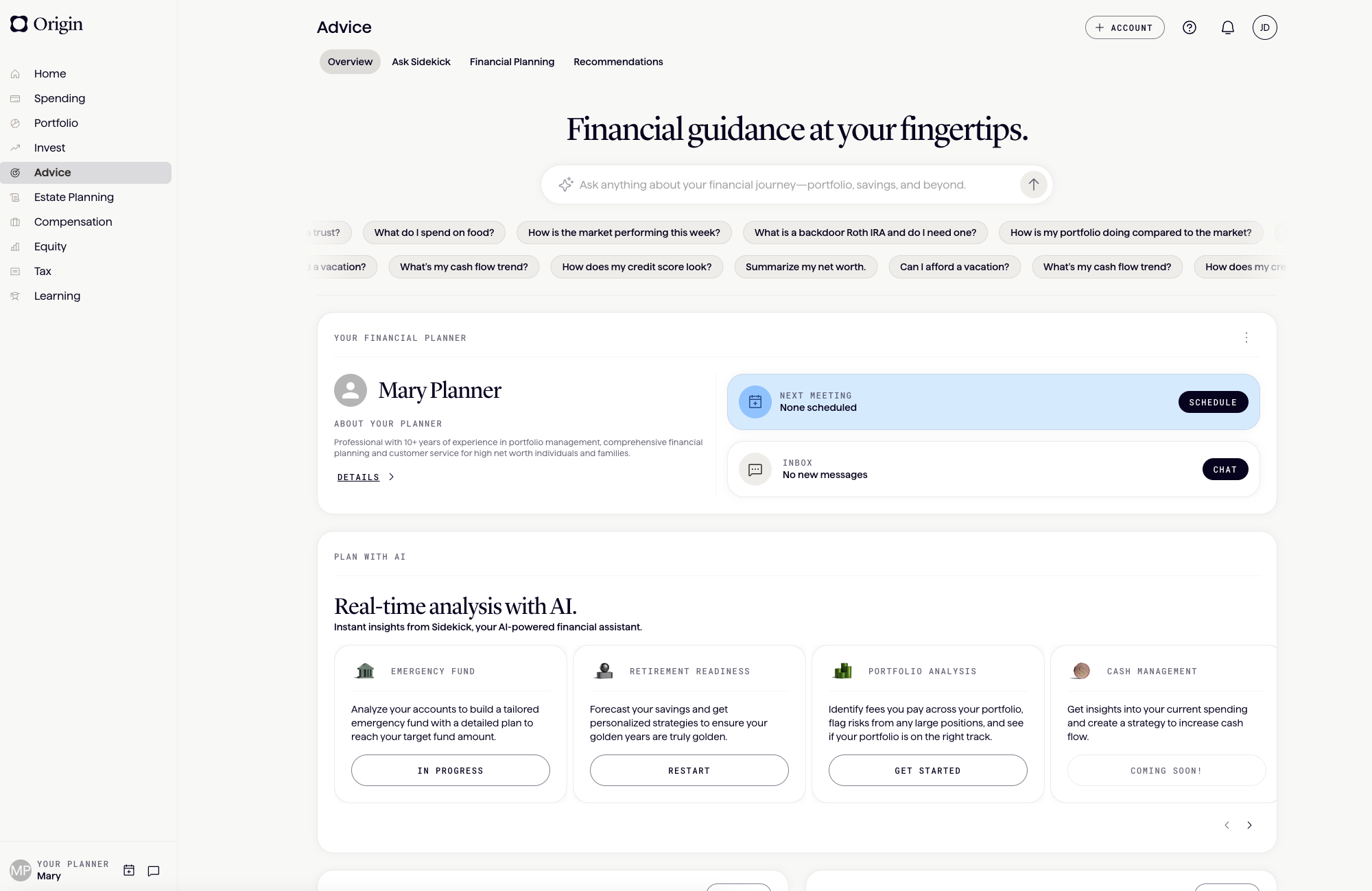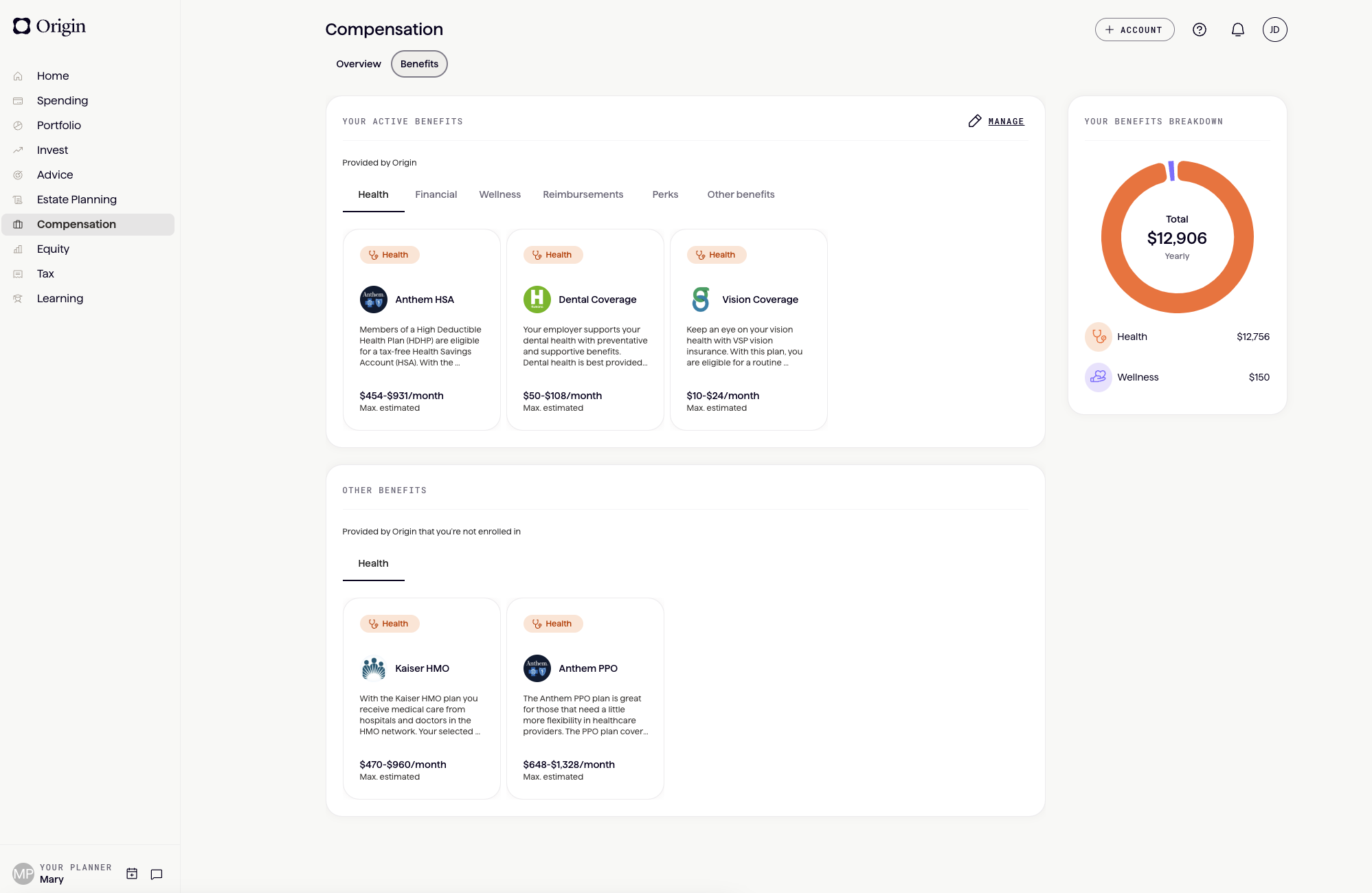 Origin empowers employees to take control of their finances with a comprehensive financial wellness solution. From budgeting and investing to tax planning and estate management, Origin provides the tools, education, and expert guidance employees need to build long-term financial security.