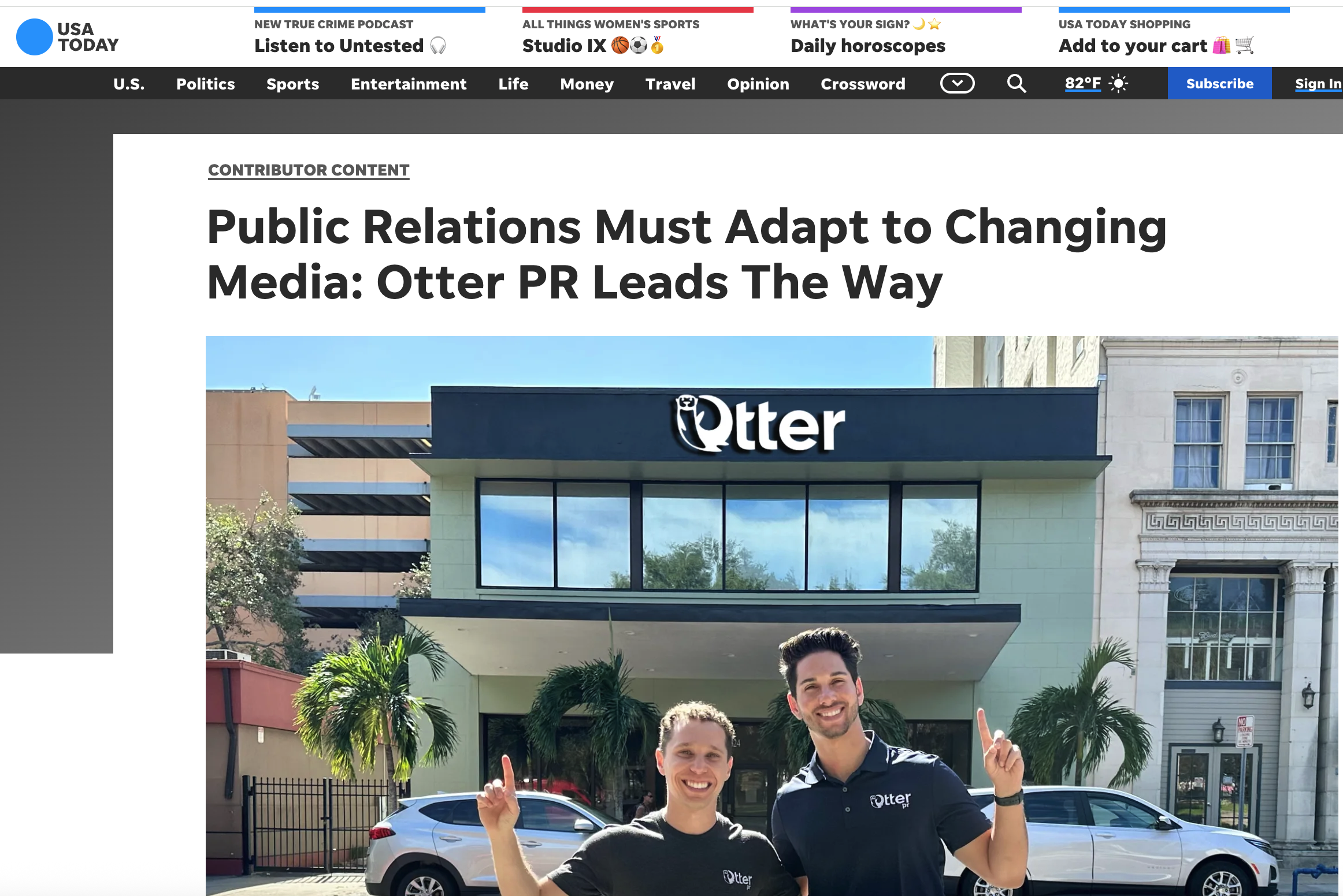Otter Public Relations is the fastest-growing PR agency in the USA. Our growing team of 45+ publicists and media partners focuses on getting your story told in the local and national media. Let us support your business in Media relations, Crisis Communications, & Reputation Management.