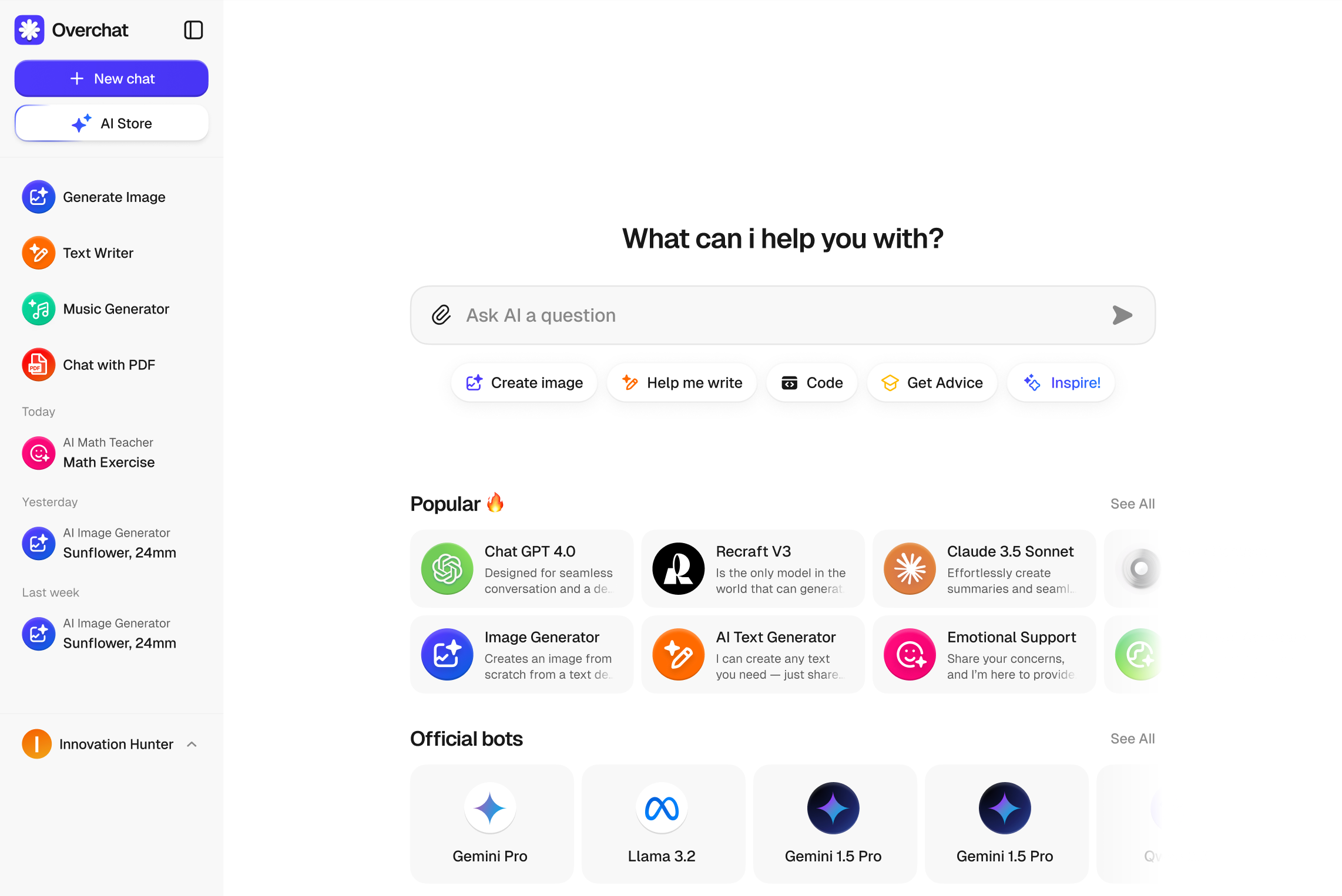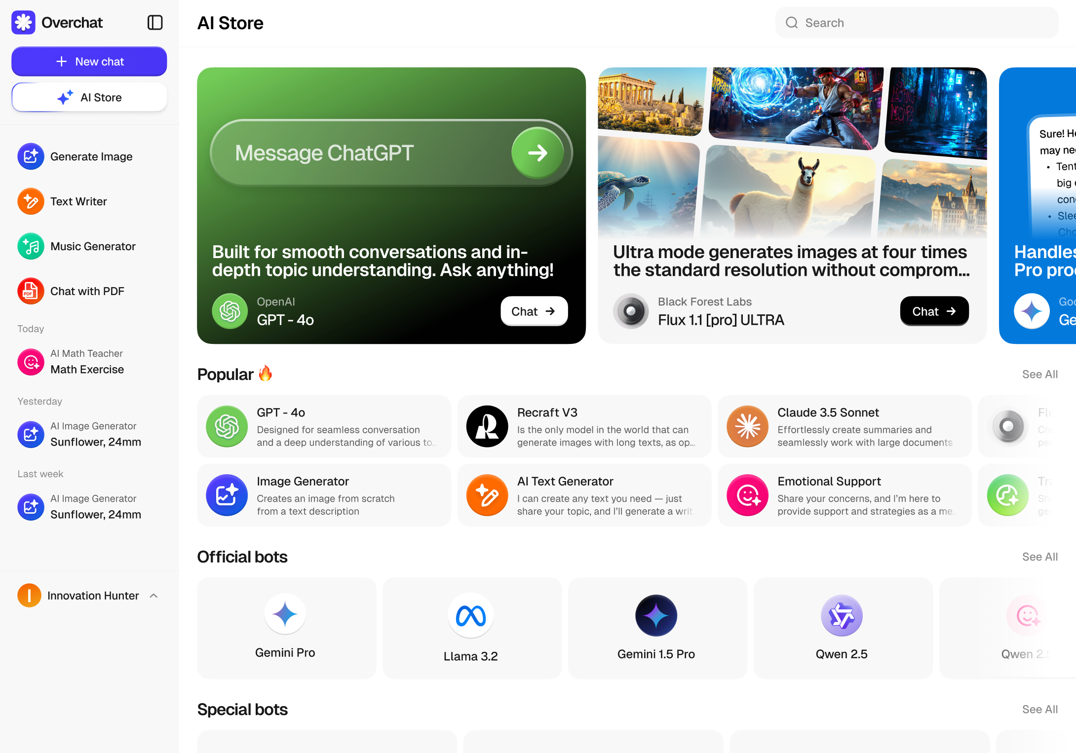 Overchat AI Store: Customize your Overchat experience: connect the most exciting apps and chatbots in just 1 click, all tailored to your needs!
