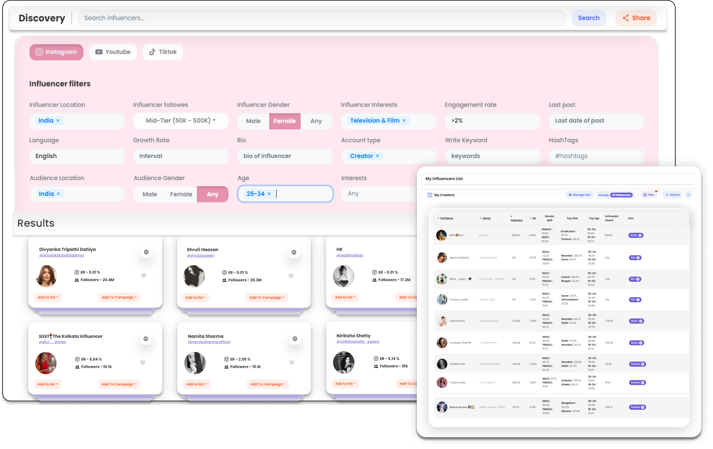 inBeat helps you find influencers for your marketing campaigns in just a few clicks.