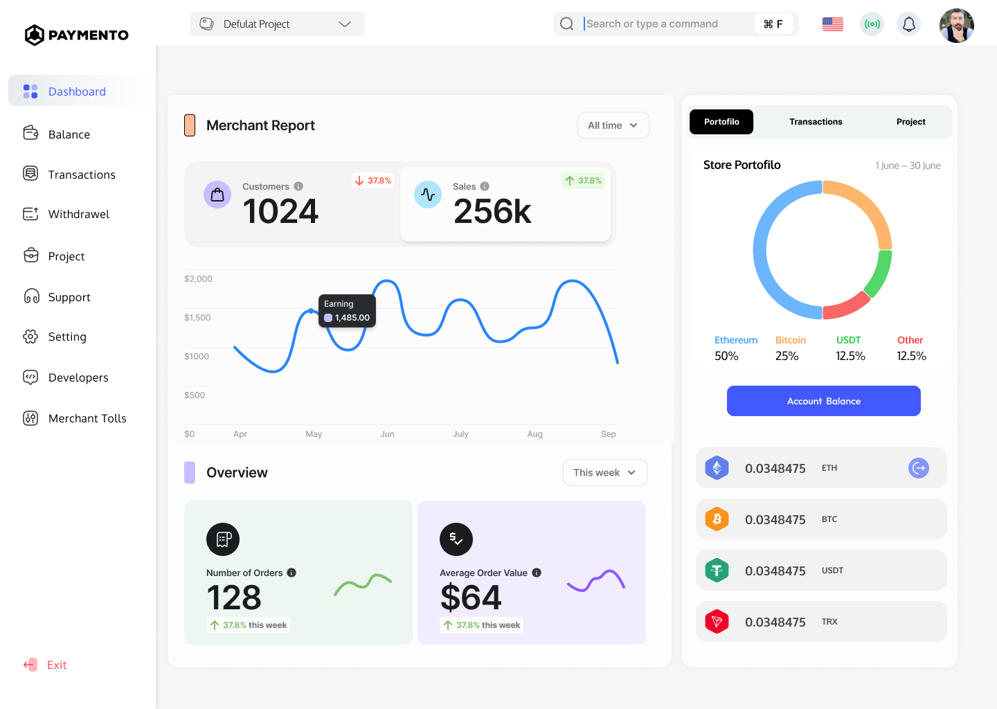 We help you receive payments from anyone in the world. At this stage, the platform supports all the main crypto coins: BTC, USDT, ETH, TRX, Litecoin, Dash.