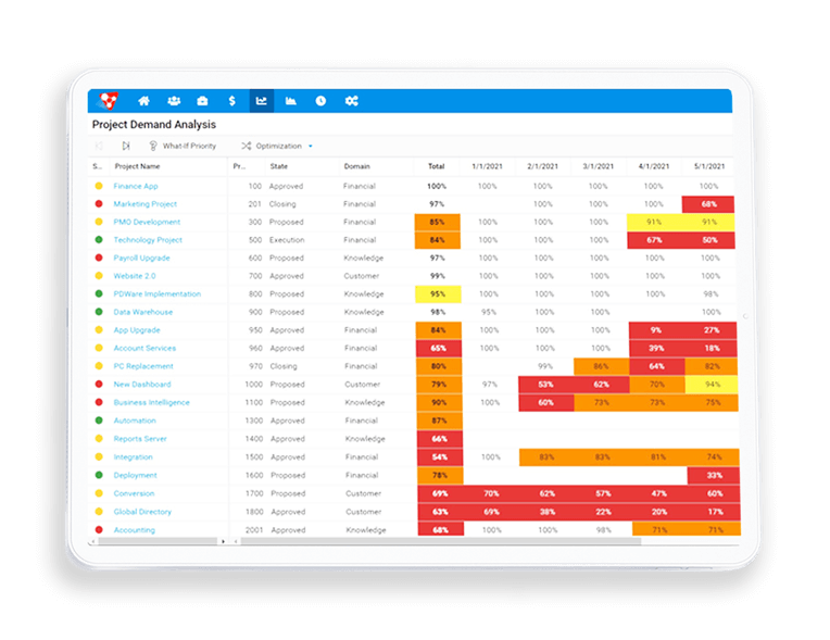 Understand resource availability if projects are started earlier or later.
