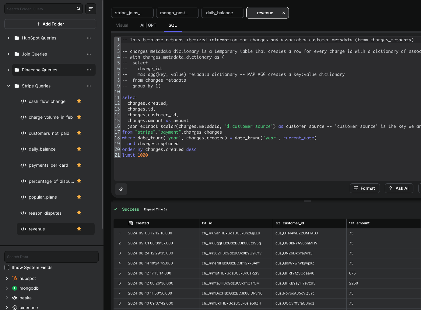 Peaka has really streamlined the way we integrate with our customers’ data stack. Relational databases, SaaS tools, NoSQL databases—no matter where our customers keep their data, we can access those data sources and use the data to enrich their decks. It is easy to implement and use. We use it a lot, and the team answers any questions at any time. Review collected by and hosted on G2.com.