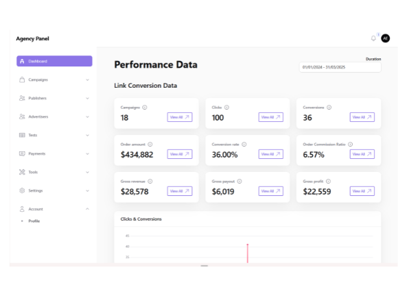 Tracknow is an affiliate software that allows you to connect your E-Commerce website or start your own affiliate marketing platform.
