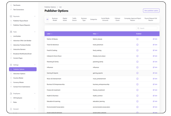 Tracknow is a SaaS platform solution that allows you to connect with your affiliates.