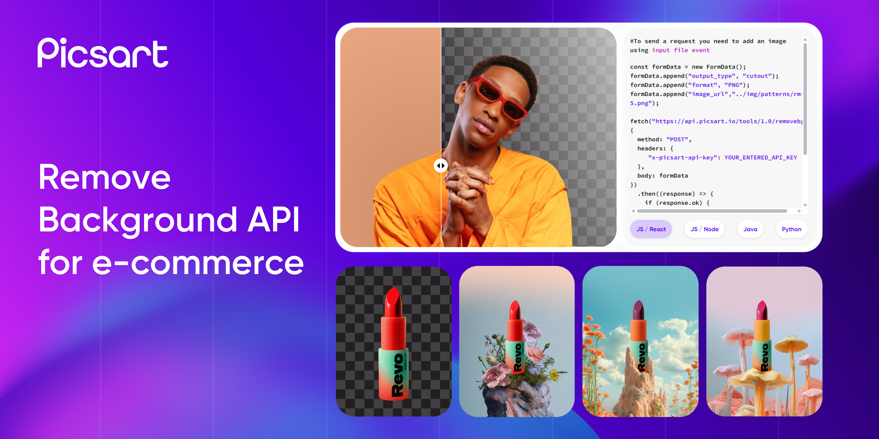 Picsart Enterprise Demo - Remove Backgrounds, Change Backgrounds, Make Transparent and White backgrounds.