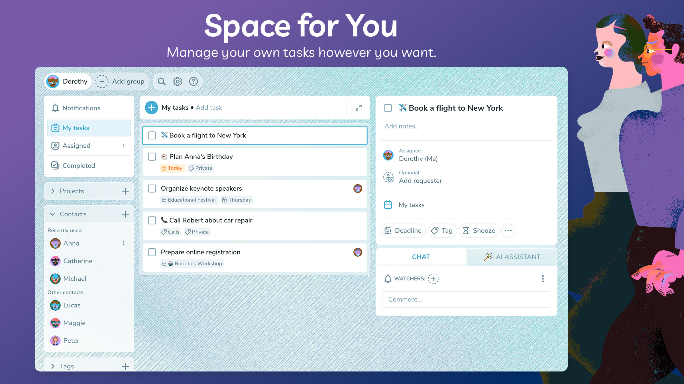 Whether you’re focusing on personal productivity or enhancing team communication, Ping combines task management, project planning, and powerful AI features into one streamlined platform.