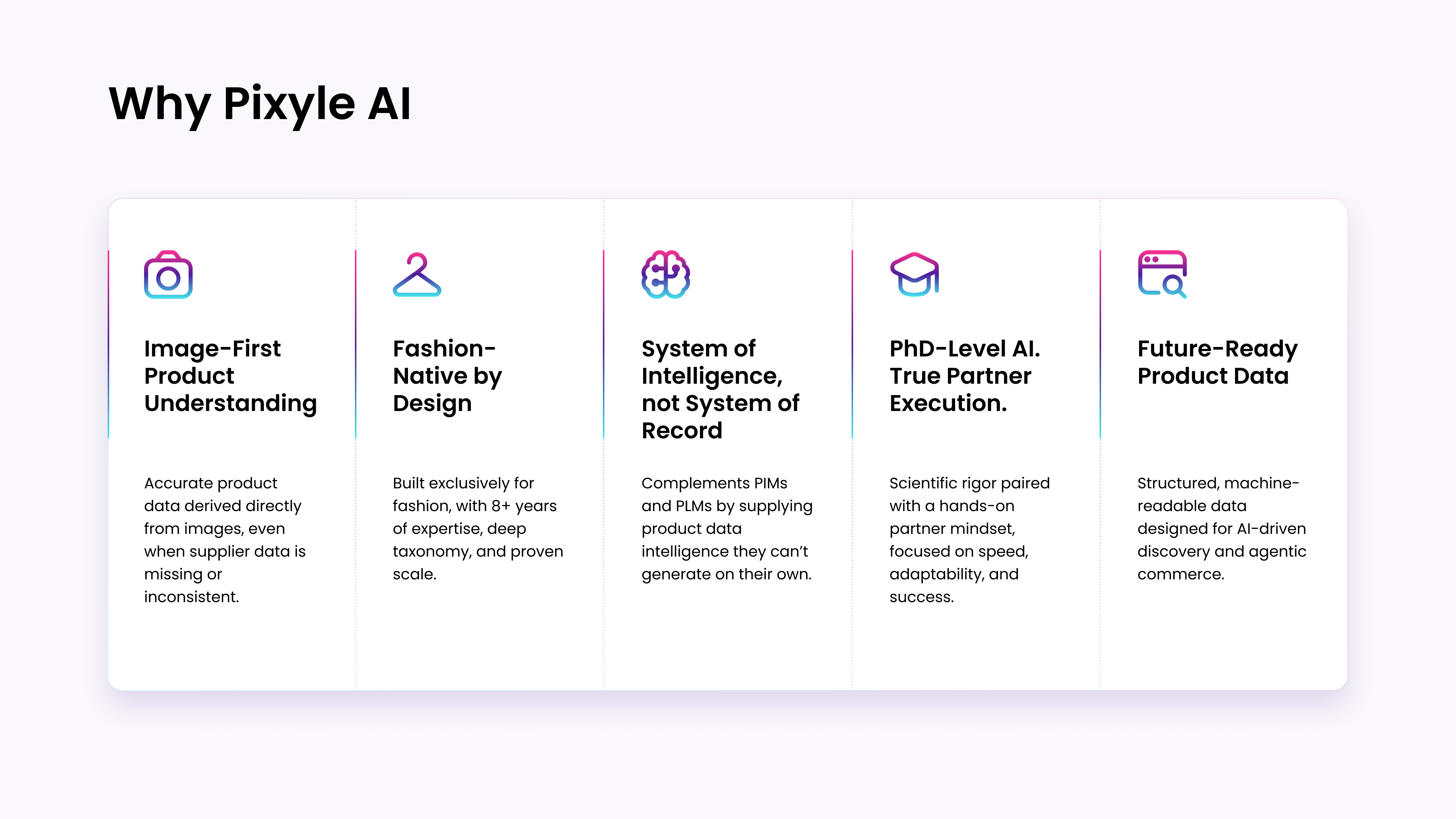 Their extensive taxonomy and the high accuracy of certain attributes, paired with useful confidence scores, were particularly beneficial for our tagging process.Pixyle.ai's team shows a deep passion for AI, constantly seeking to improve their models. This dedication is reflected in the quality of their service.