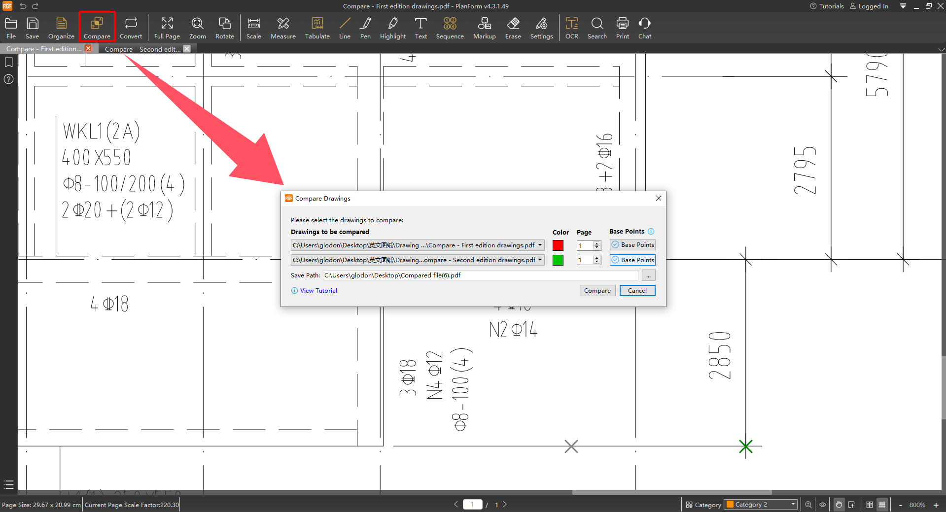 When design changes occur, with Planform, you can compare drawings by overlapping 2 pages of PDF. doubling your efficiency in drawing review.