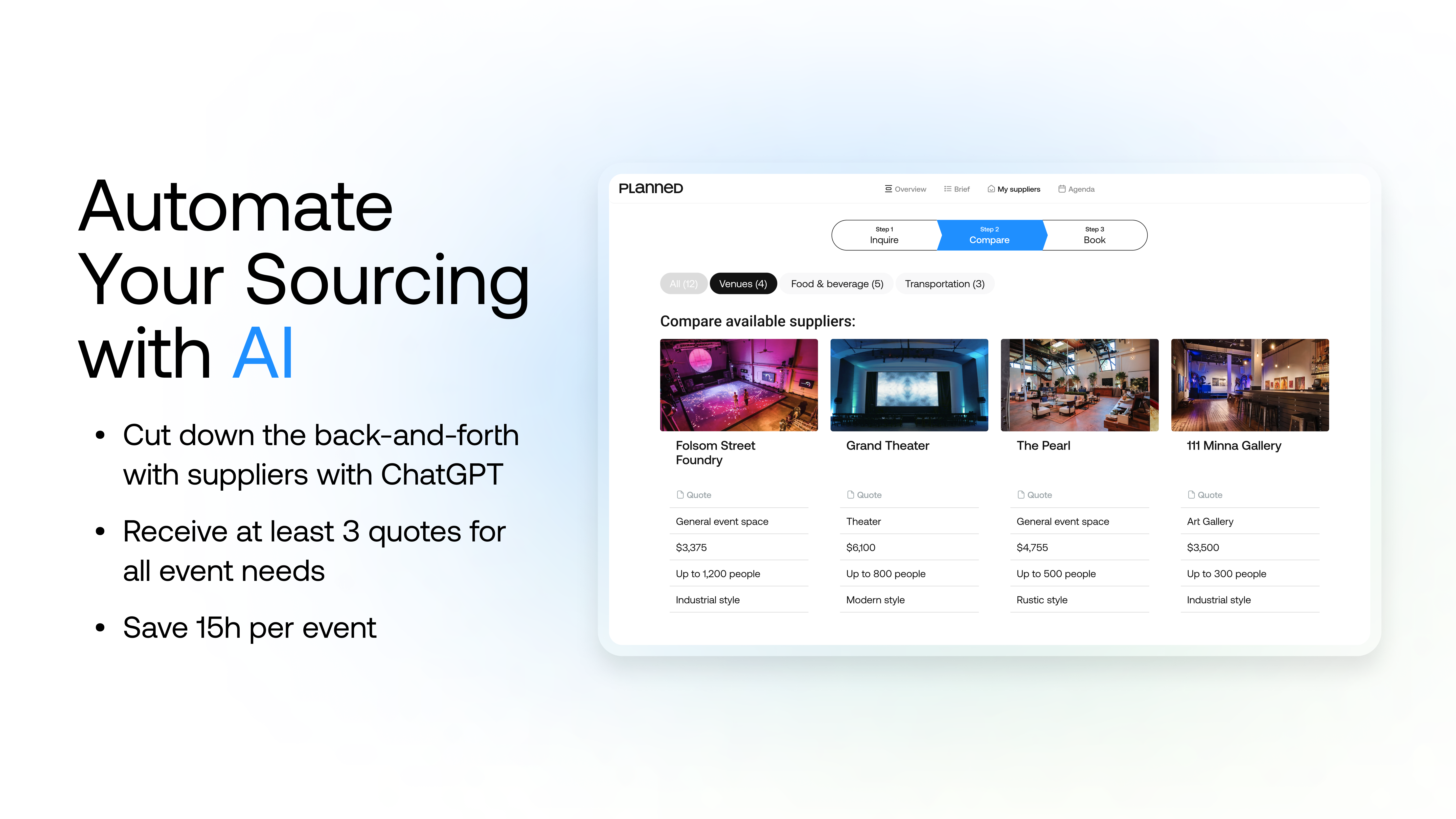 Go from the chaos of spreadsheets to an all-in-one event management tool where you can track inquiries, send proposals, and get paid - all in one place.