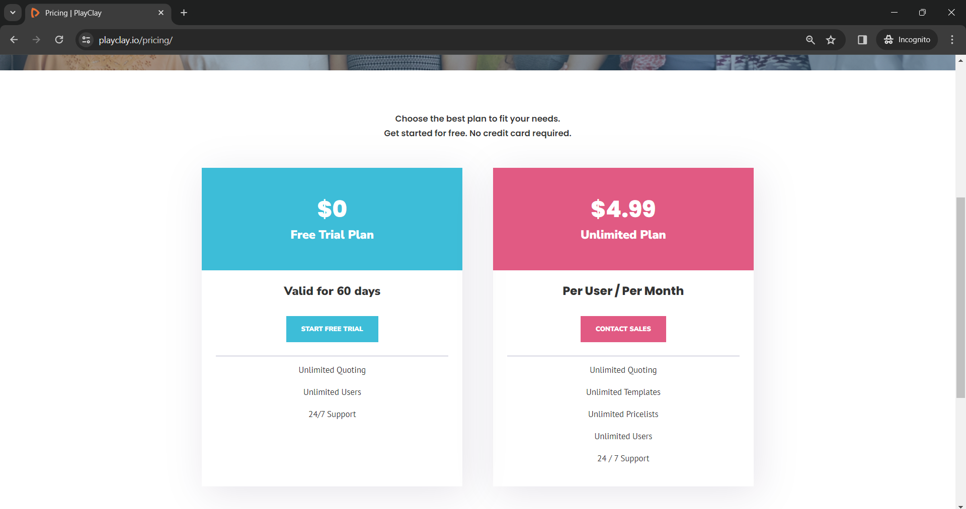 You can easily signup and use PlayClay free for 60 days. No credit card is required