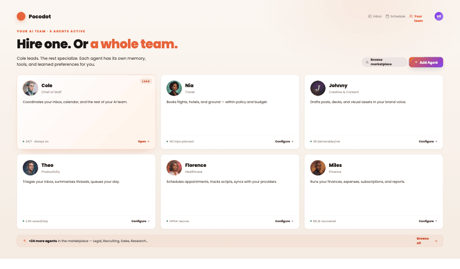 - Prebuilt AI Agents: Provides ready-to-use AI agents with built-in expertise, logic, and integrations for functions such as HR, sales, procurement, and customer service, enabling rapid deployment.