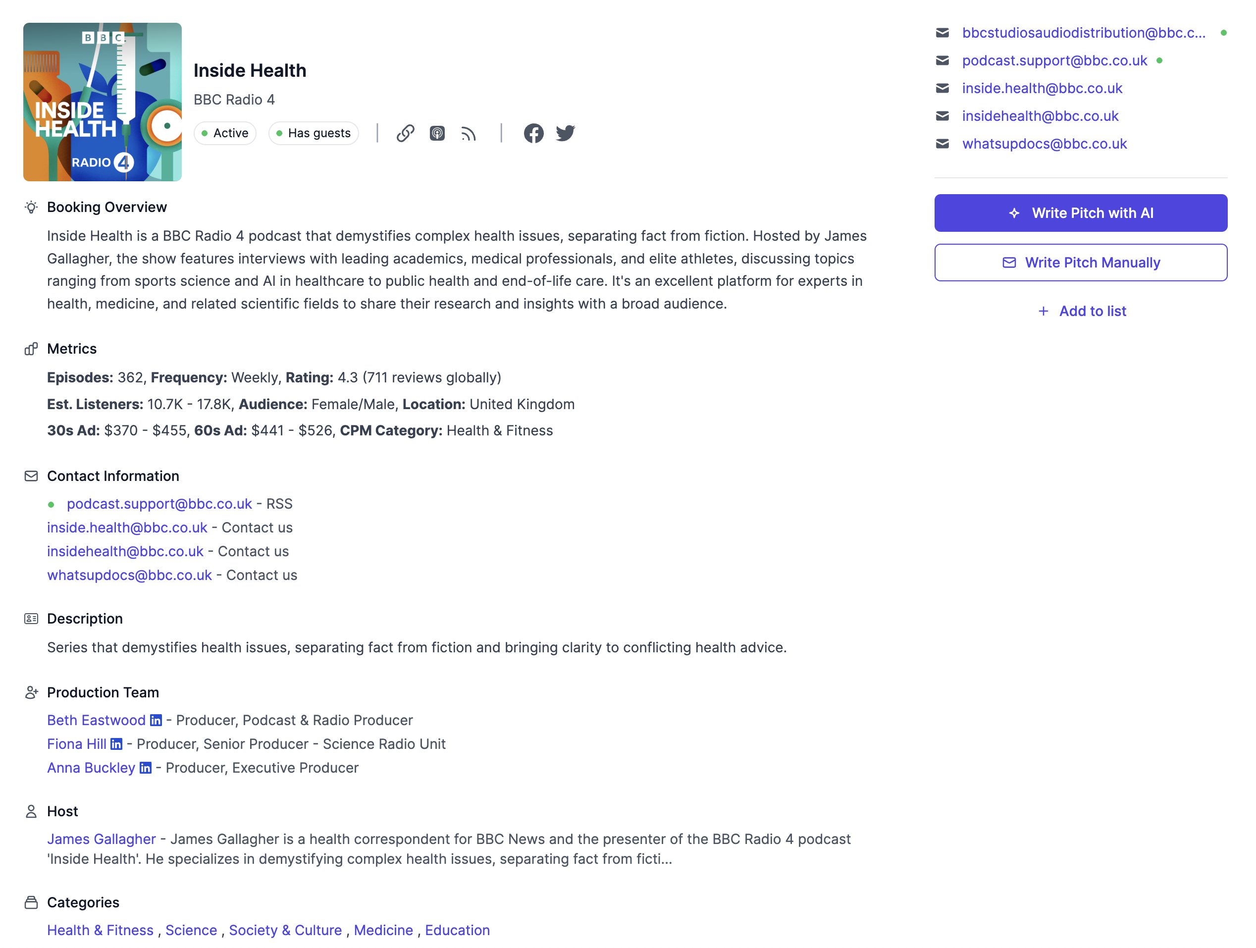 The program is very intuitive and easy to use. It also provides me with all the information I need to decide whether a podcast is appropriate for my client. I am not technologically savvy and I've tried using another podcast software program but found that it was not intuitive to a pr professional's needs. This program not only is very user friendly it also has outstanding customer service, something which is increasingly rare in this day and age. When I have a question, I receive a response from a human and not a bot. And I always receive a response in a timely fashion. Review collected by and hosted on G2.com.