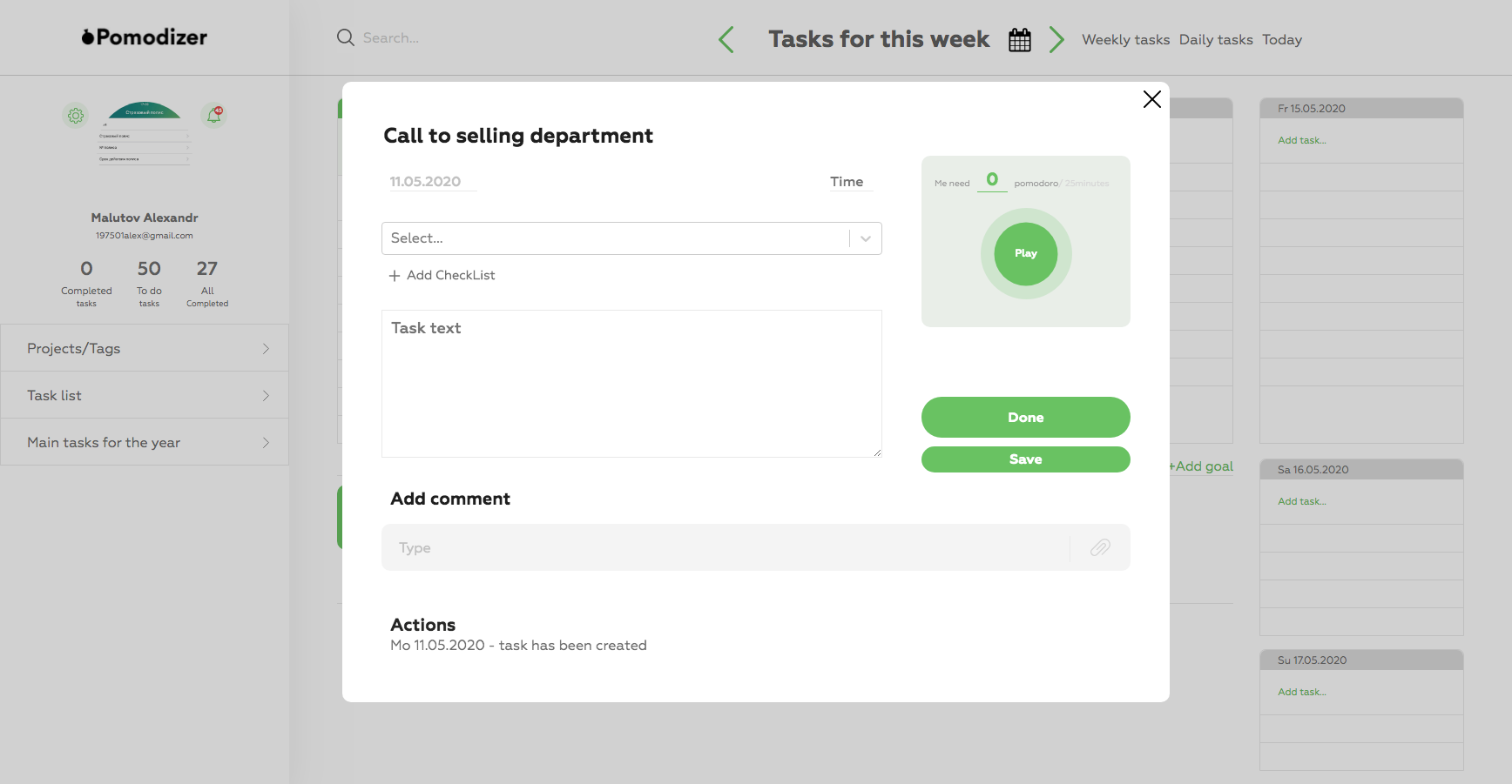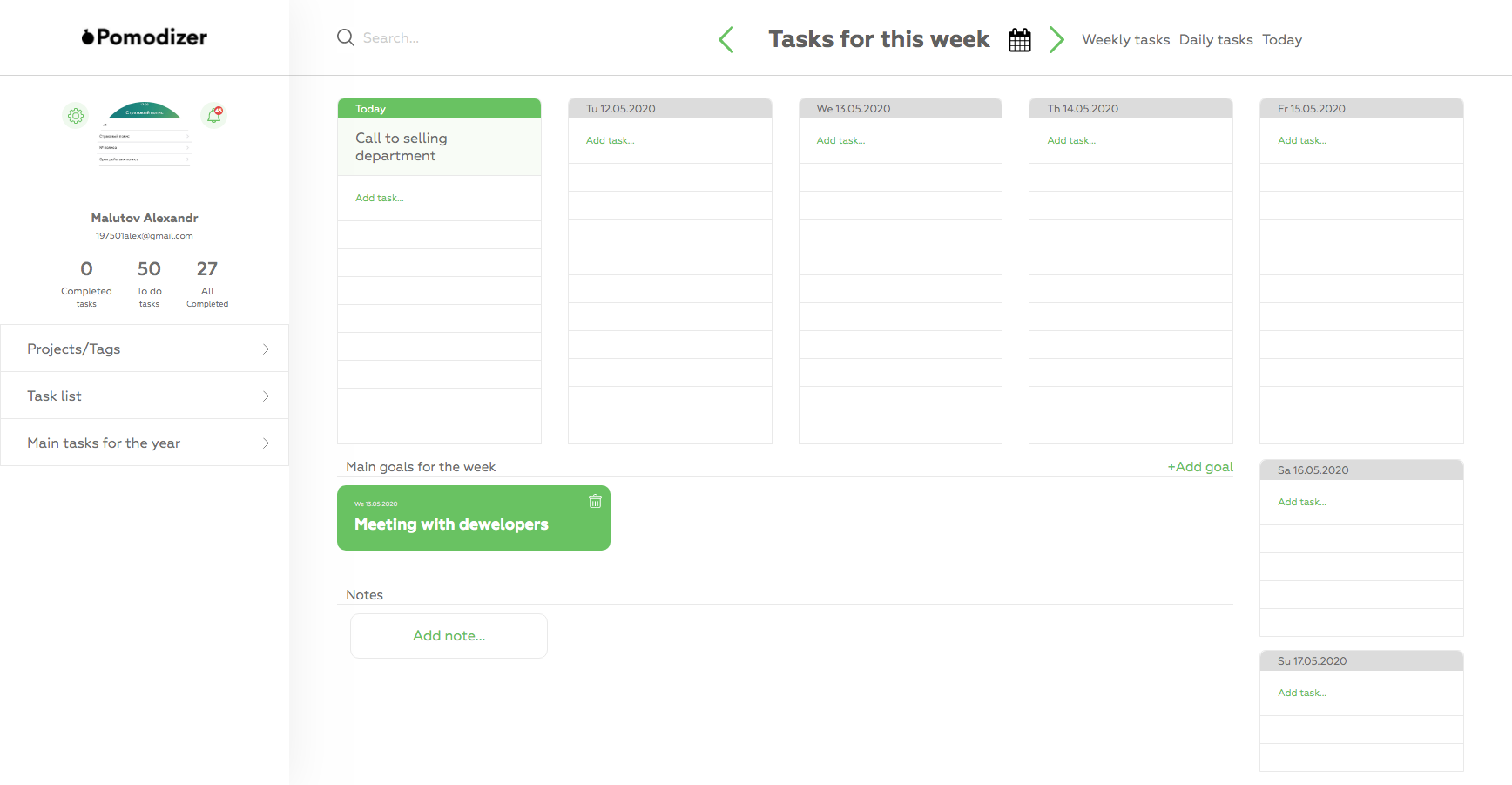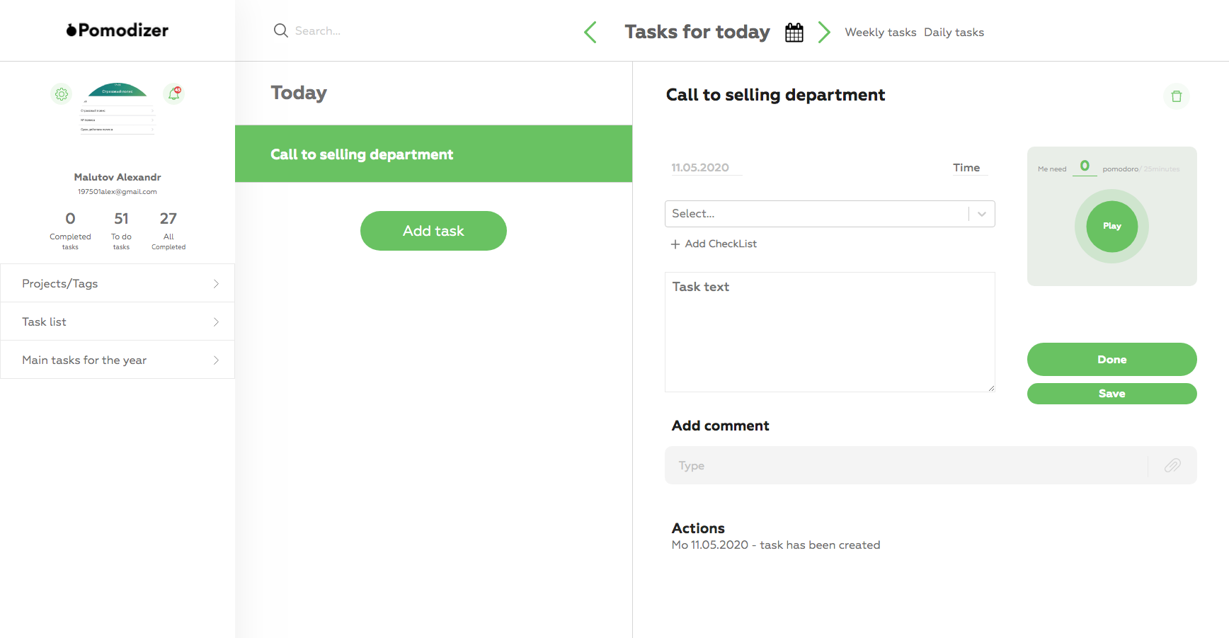 The workday is your tomatoes that are displayed in the productivity app. A standard eight-hour work day equals 14 "tomato" segments. When you make a list of tasks for the day, you estimate in advance for which tasks you want to allocate more time, for which less time, and which should be postponed until tomorrow. If you have completed all of your plans for the day faster than necessary - close the remaining gap with a small task or schedule the next day.