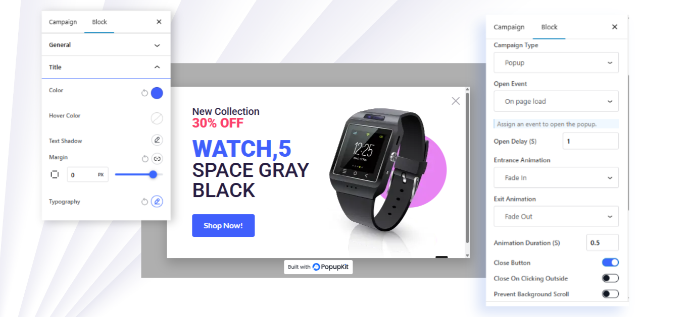 PopupKit Demo - Slide-in, Floating Bar, Gamified and more campaign type available with full customization.