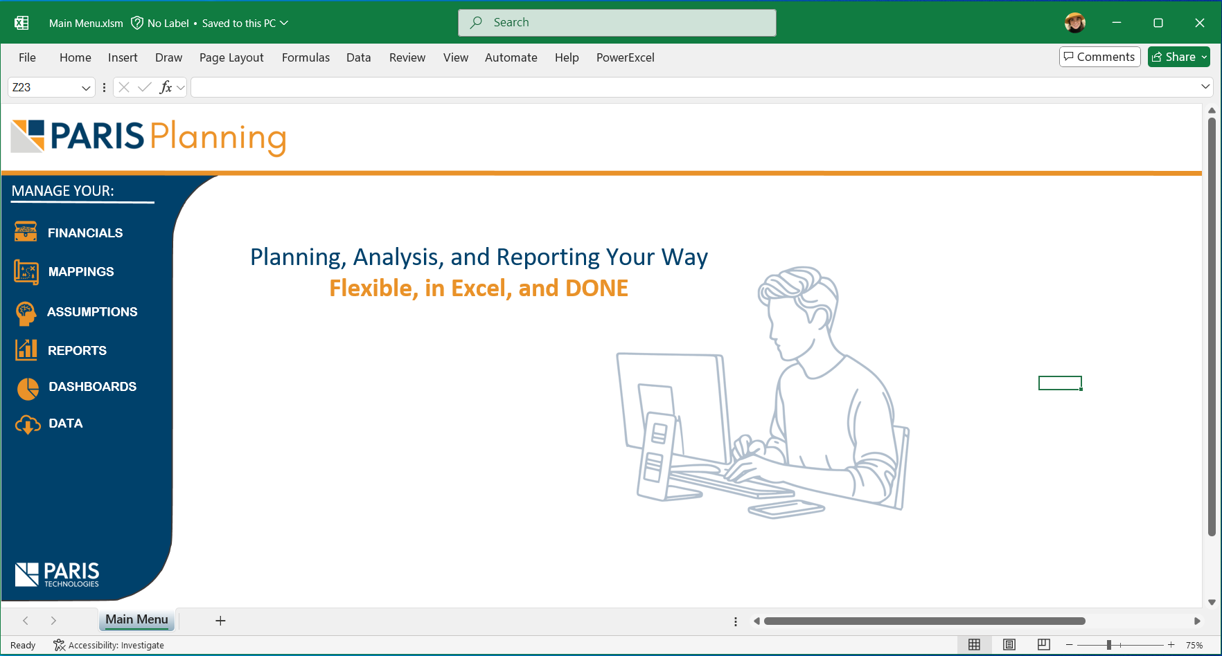 PowerAnalytics, developed by PARIS Technologies, is an advanced yet intuitive financial planning and analysis application that connects your ERP or accounting data directly to Excel — giving finance teams the speed, flexibility, and control they need to plan, report, and analyze with confidence.