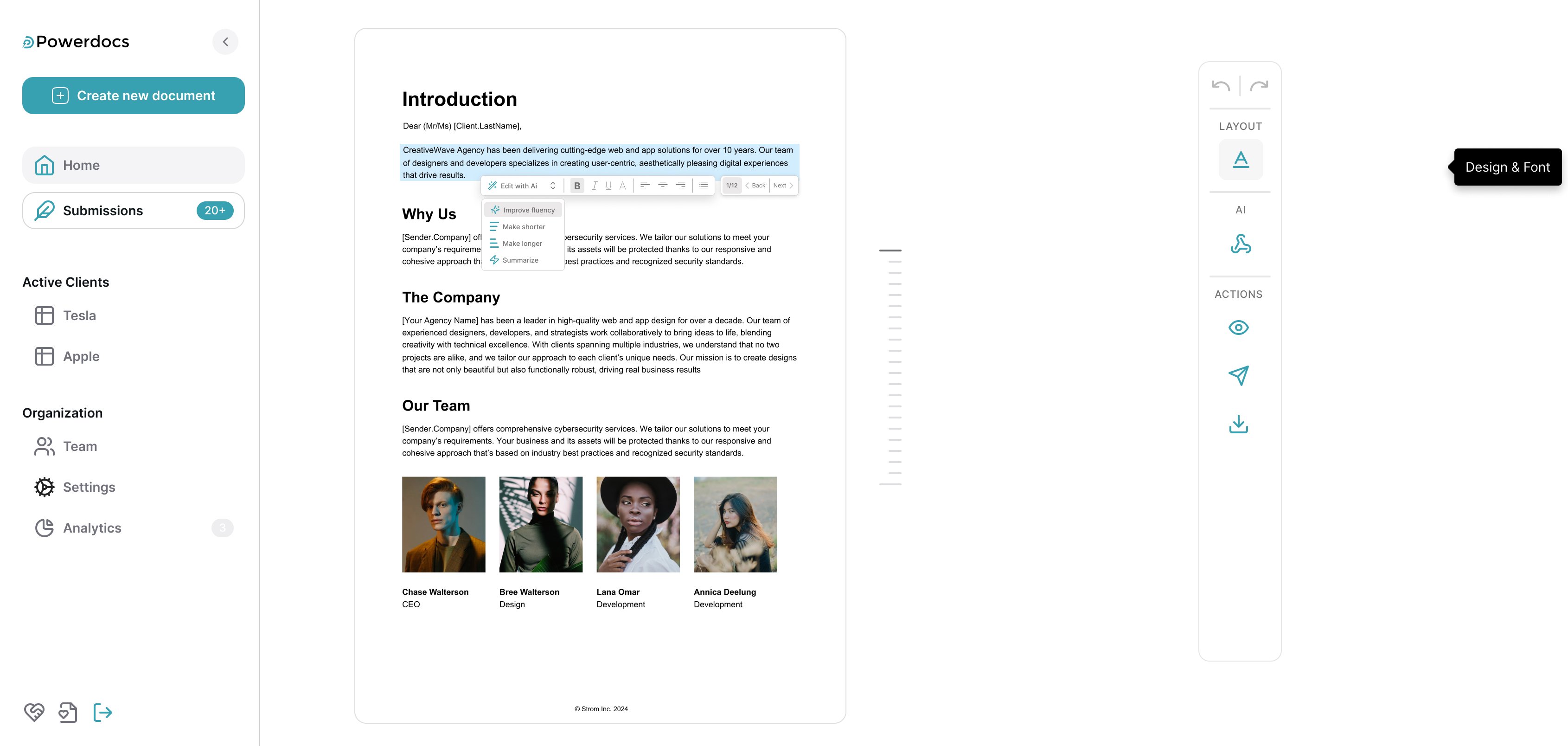 Save time and win more work by replacing your sales documents with interactive & mobile-friendly webpages that plug into your systems and are as easy to build and reuse as they are beautiful.