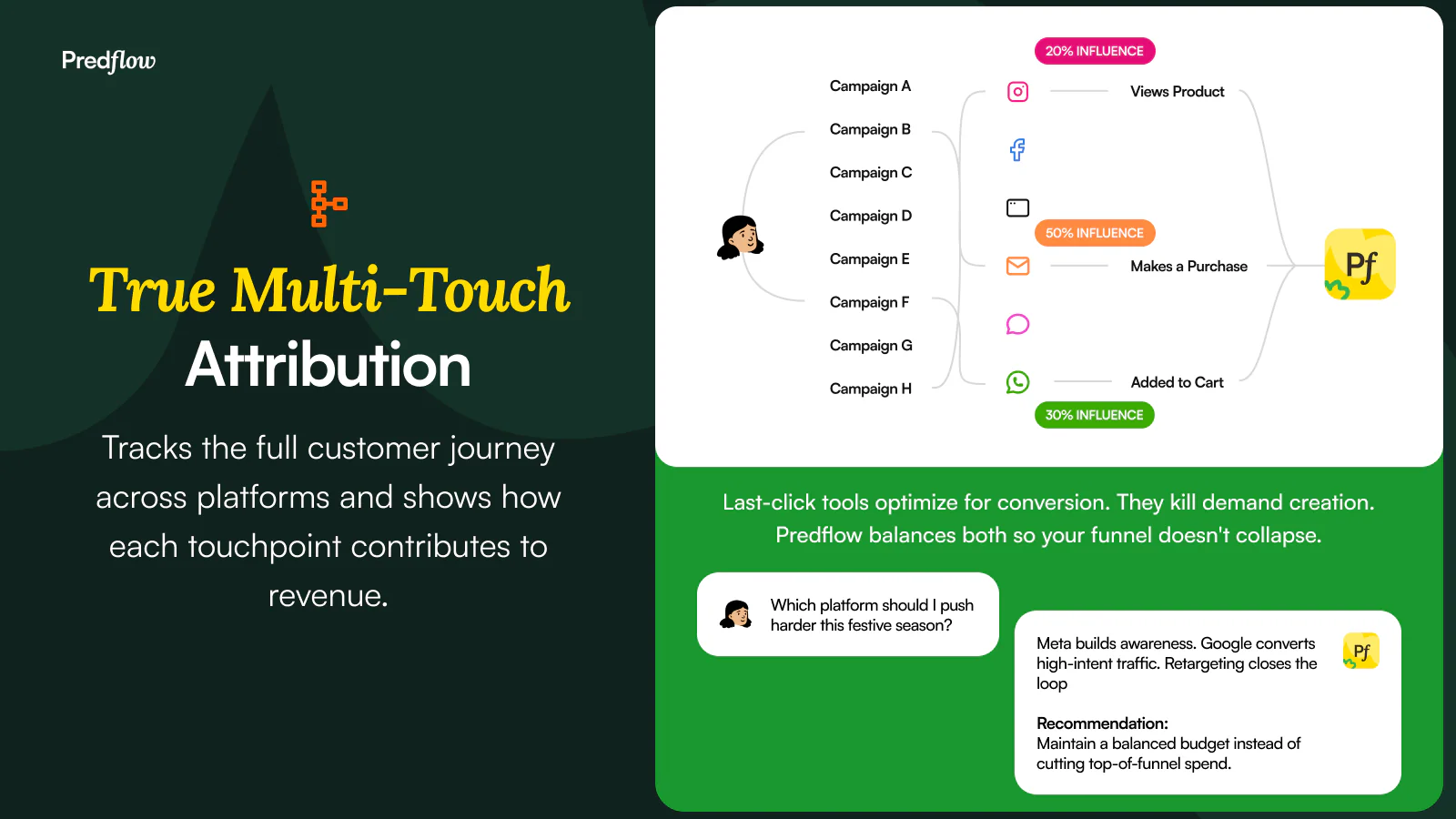 By structuring cross-platform signals into decision-oriented insights, Predflow AI supports performance monitoring, attribution analysis, anomaly detection, and optimization workflows.