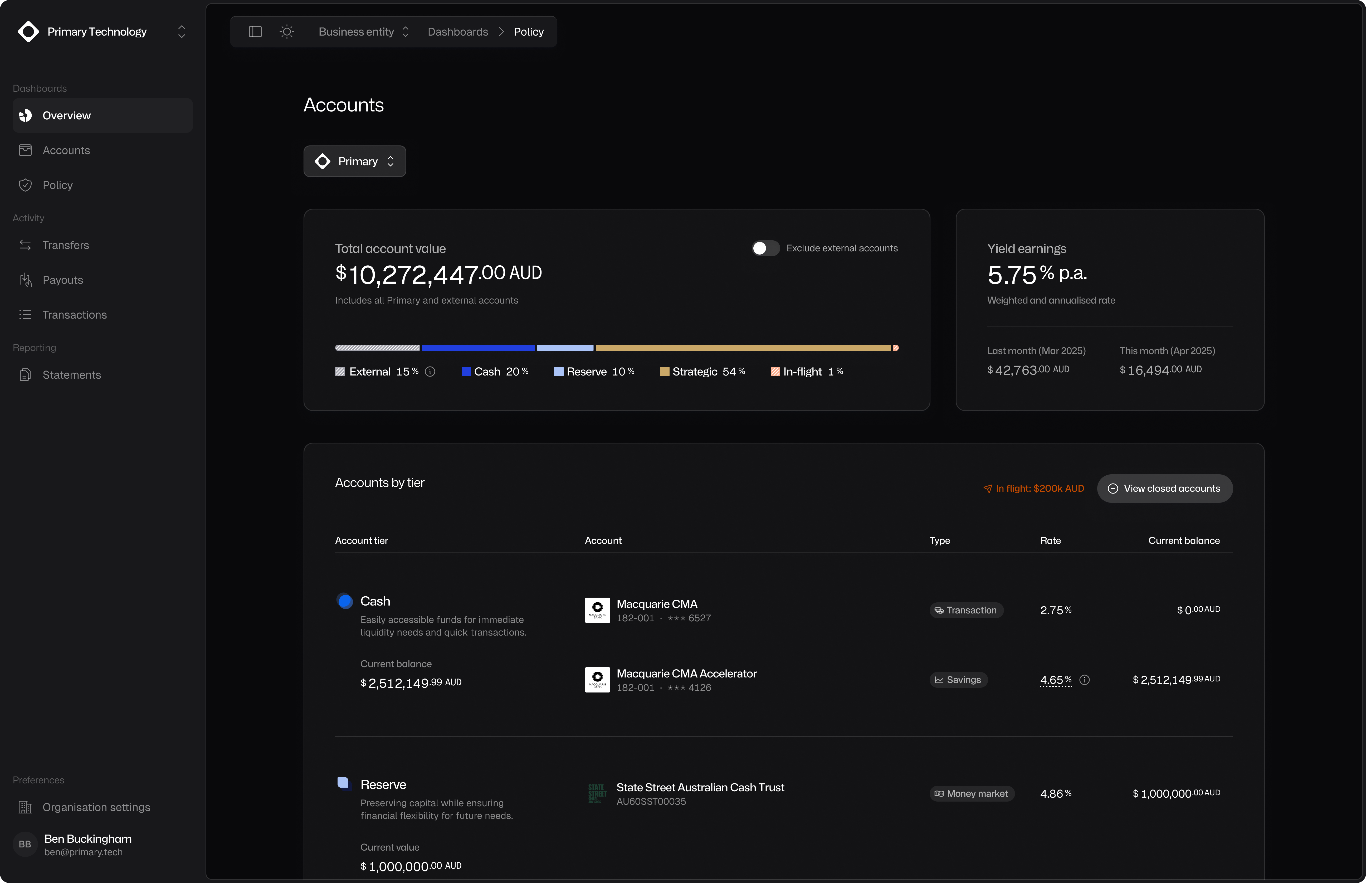 Automate payments from internal systems or your ERP, and make one-off payments from your bank accounts in a central dashboard with strong controls.