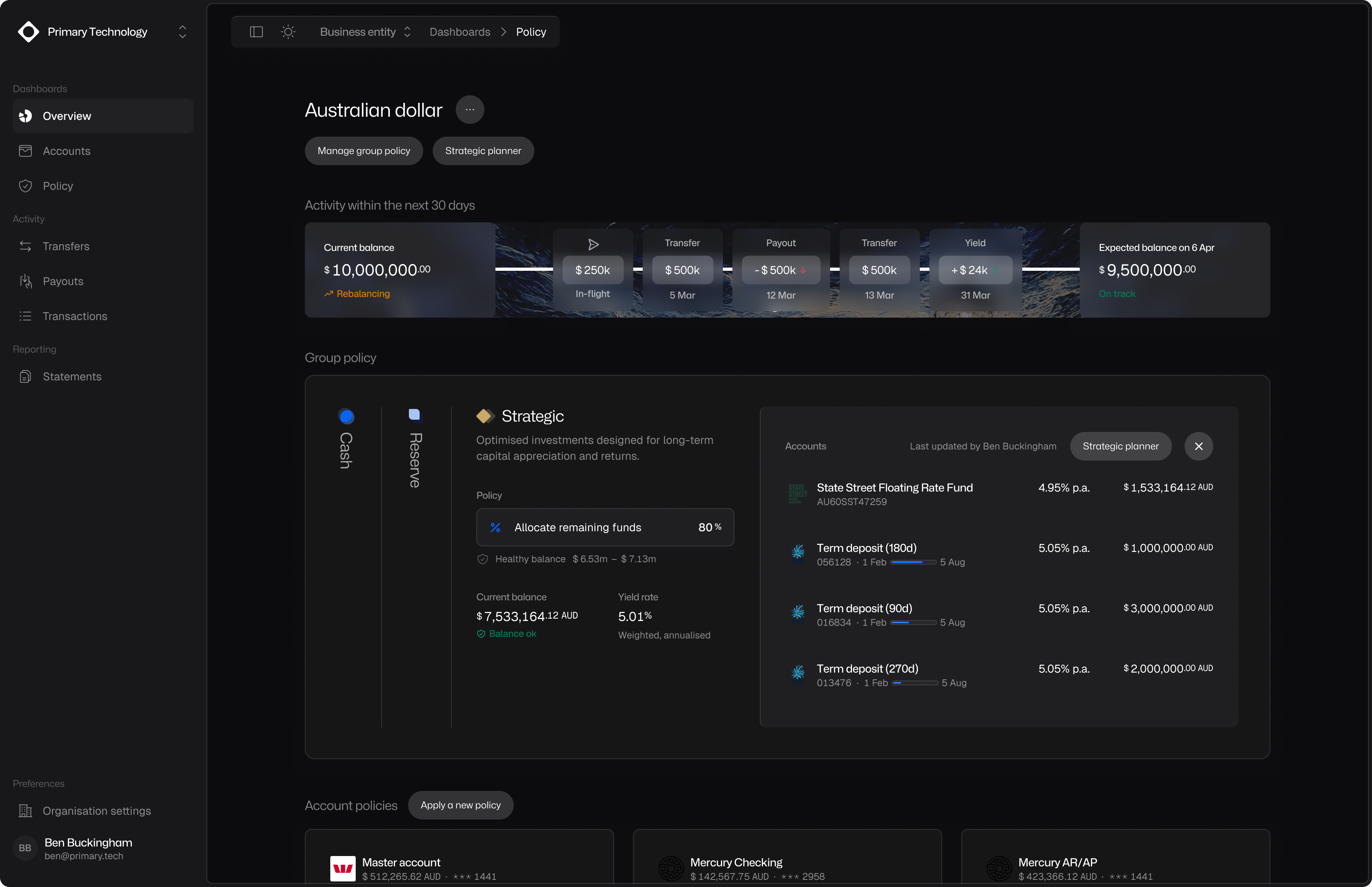 Keep your cash flows, cash accounts, debt positions and forecasts monitored and automated real time.