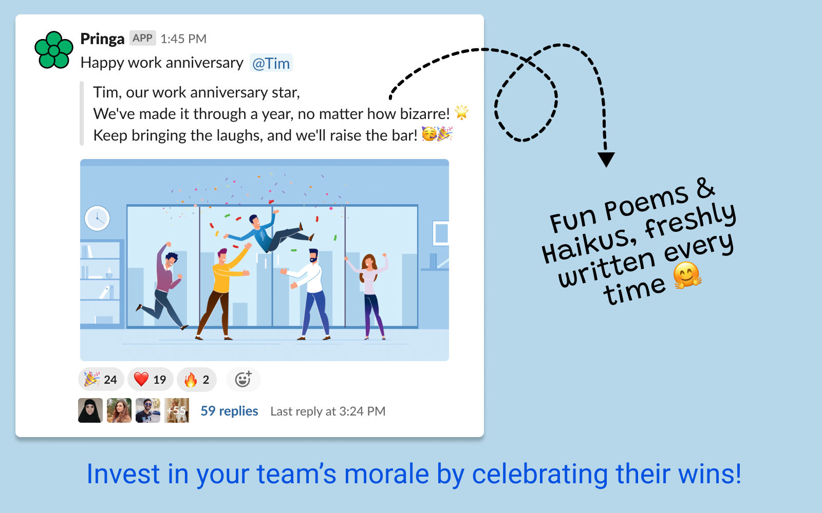 Matter transforms your culture by bringing employee recognition, celebrations, and rewards together - all inside Slack or Microsoft Teams.