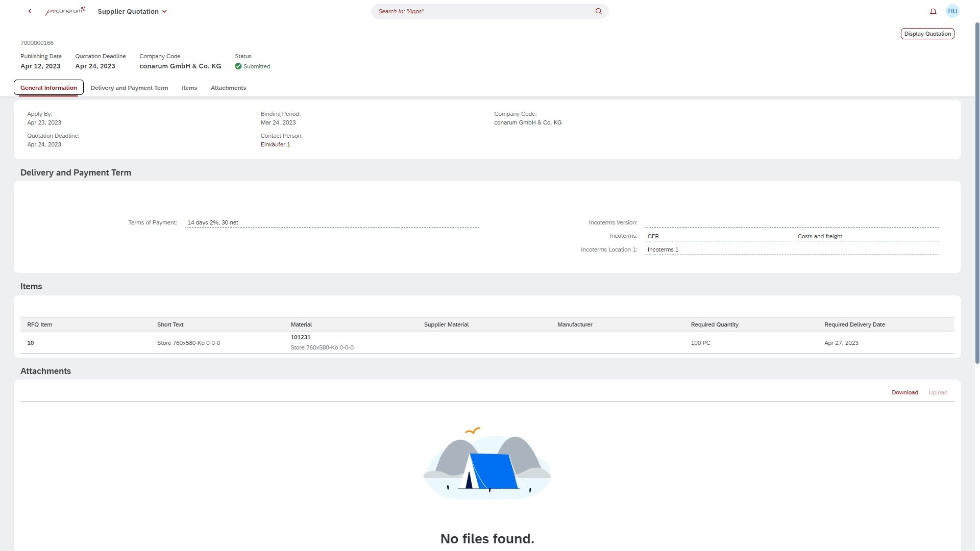Our RFQ quotation solution seamlessly integrates with the new SAP S/4HANA RFQ functionality. Suppliers can easily enter and maintain their quotations online, access provided documents, and upload additional attachments.