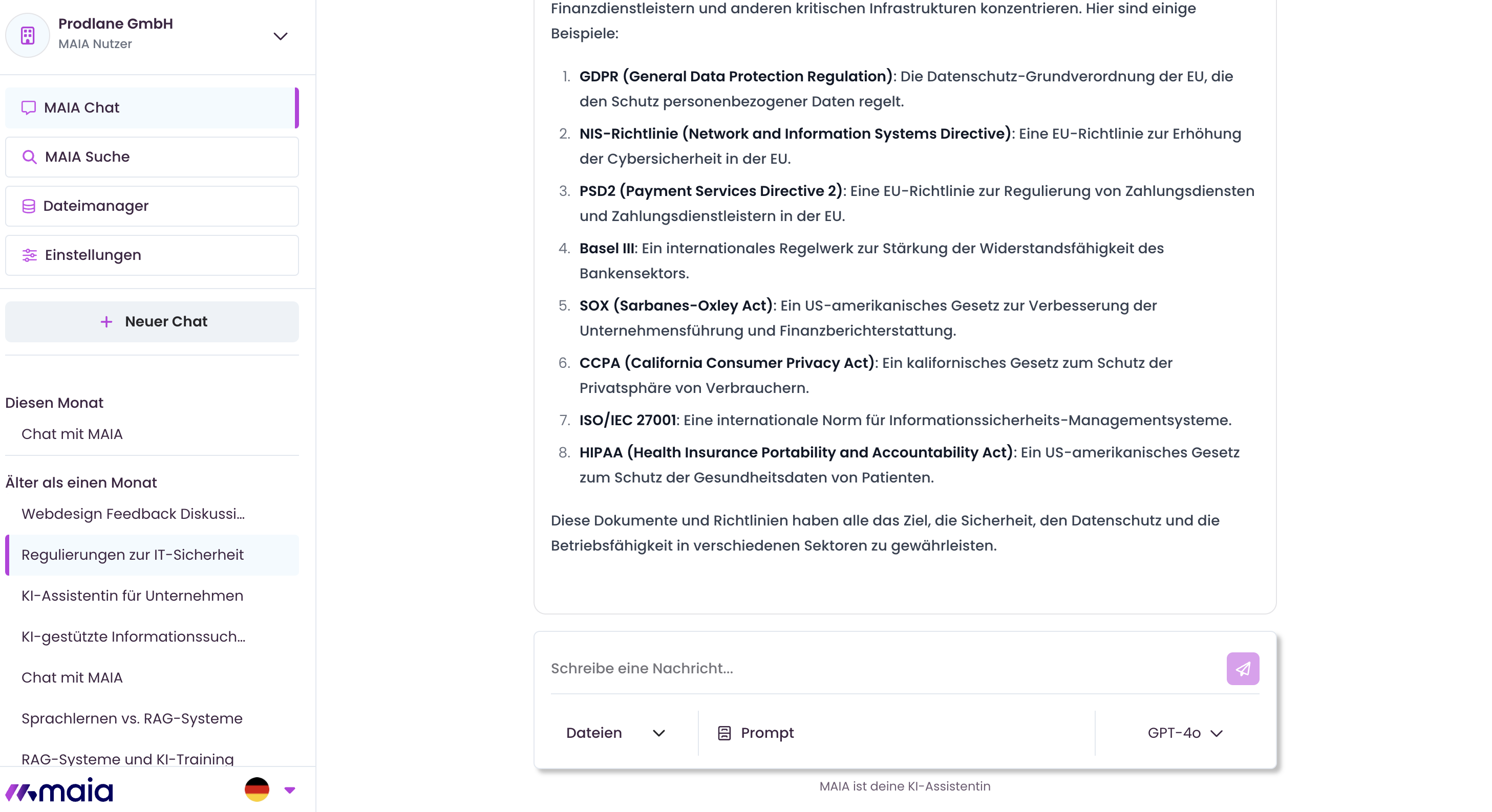 MAIA stands out for its ability to search across both documents and internal knowledge bases like SharePoint and Confluence with high accuracy. It understands context, links back to the right source, and makes it easy for teams to get reliable answers quickly. What really sets it apart, especially in a European enterprise context, is its strict GDPR compliance. Knowing that all data is processed securely and hosted on EU infrastructure gave us peace of mind from day one. As someone who worked in a regulated industry, this was a major reason for adoption. Review collected by and hosted on G2.com.