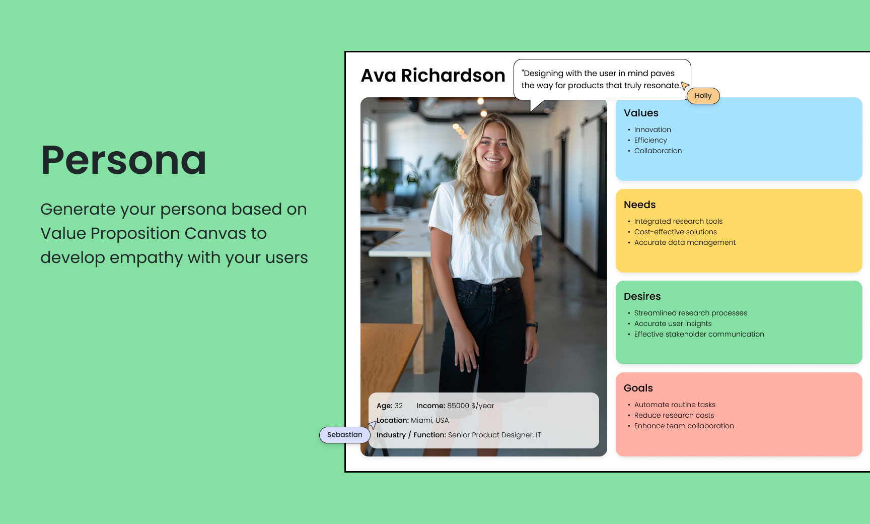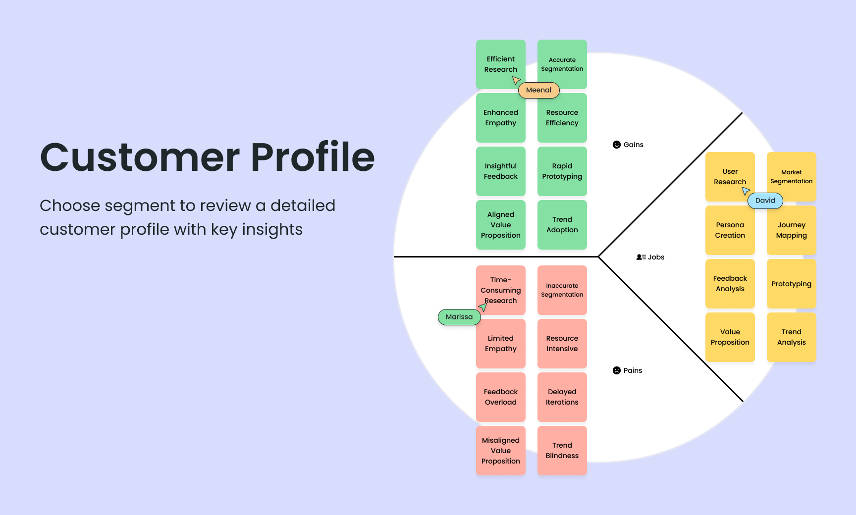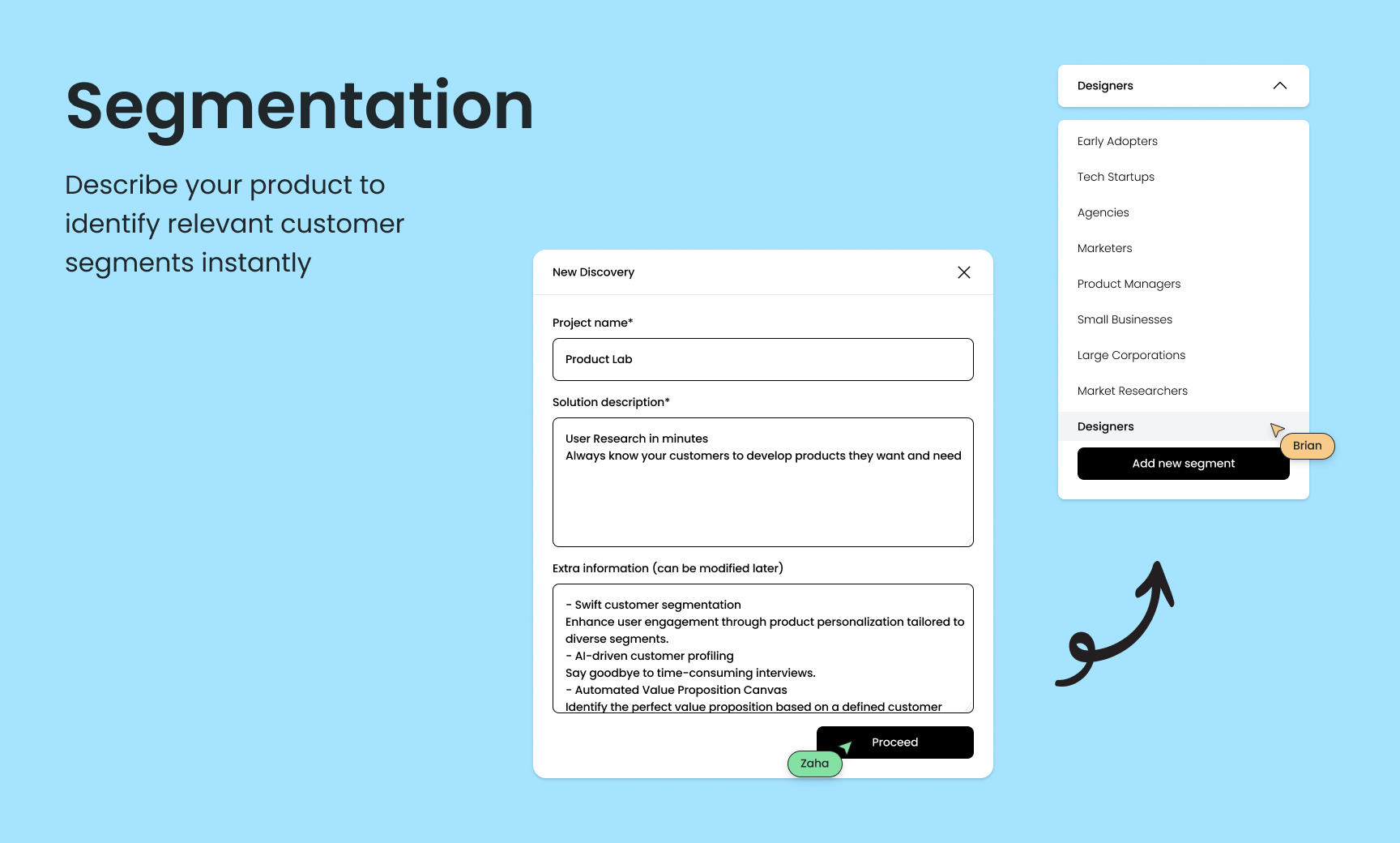 Say goodbye to weeks of user research and competitor analysis. Product Lab revolutionizes discovery, equipping your product team with data-driven decision-making in minutes. Product Lab offers fast comprehension of any product or service, including customer segmentation with detailed profiles of each segment, corresponding value propositions, personas, and journeys — all at your disposal with just a few clicks.