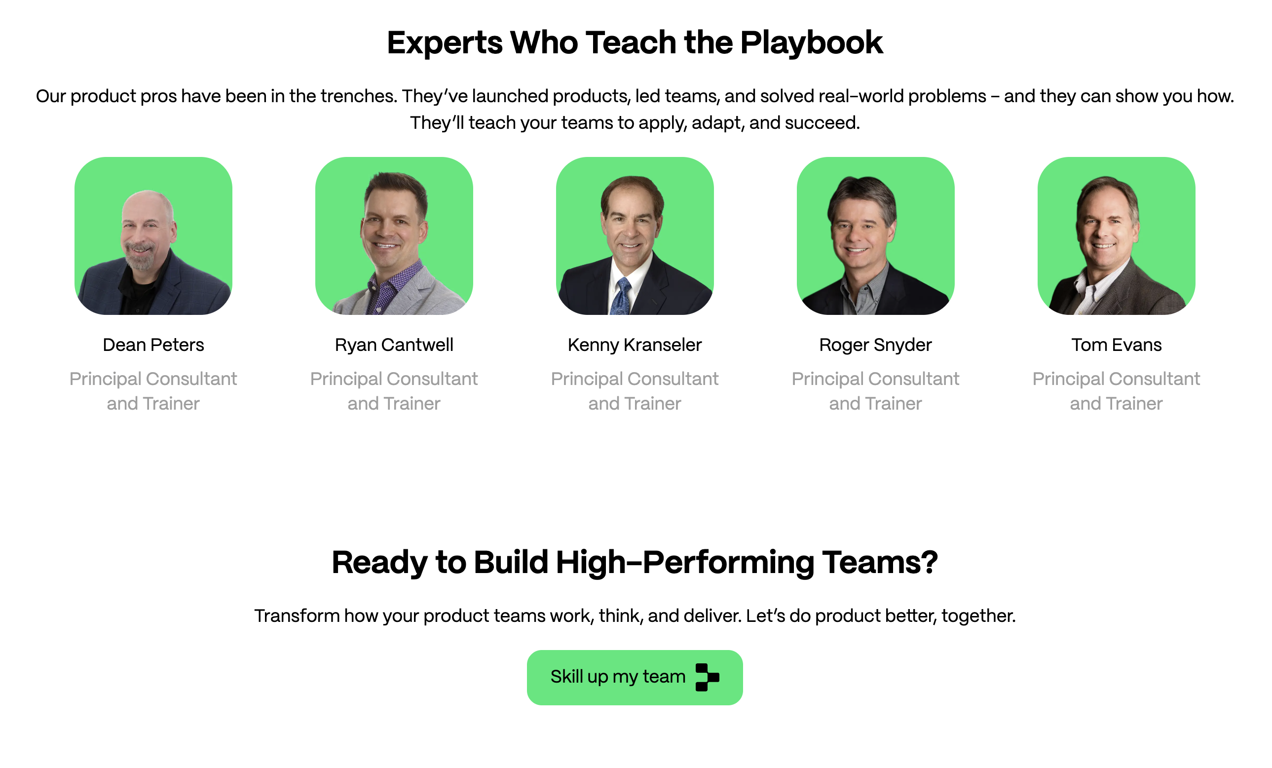 Experts Who Teach the Playbook Our product pros have been in the trenches. They’ve launched products, led teams, and solved real-world problems – and they can show you how. They’ll teach your teams to apply, adapt, and succeed.