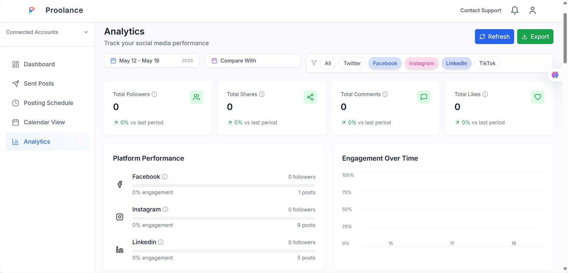 Schedule unlimited posts, manage social networks, track conversations, and measure performance from a single dashboard.