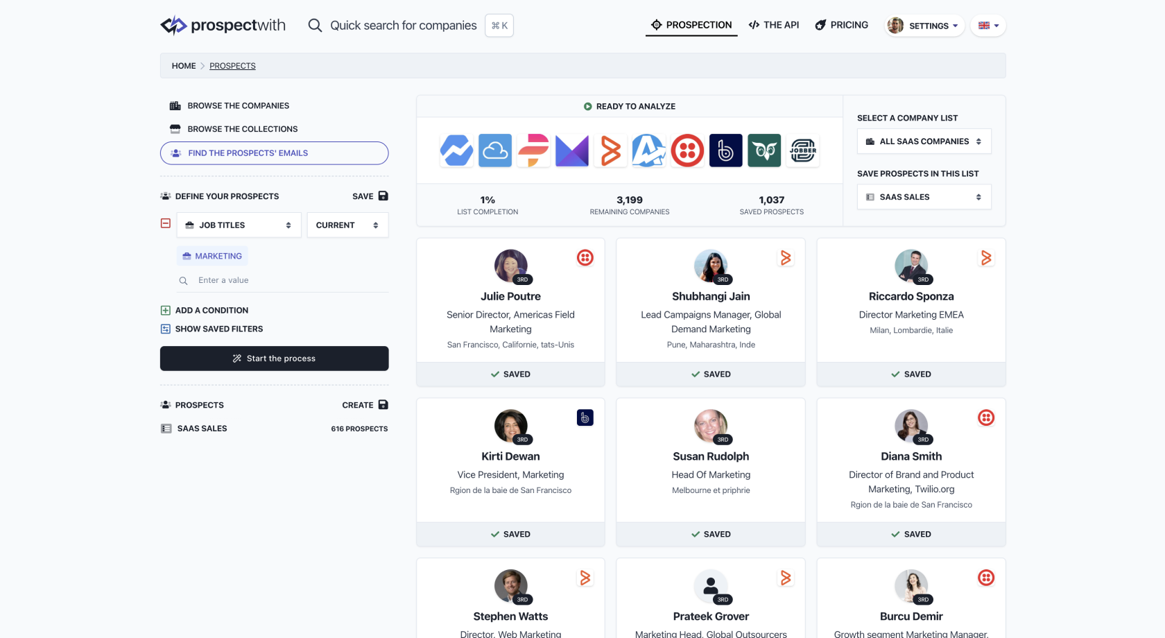 I experience considerable difficulty in setting up ProspectWith at first. I have not able to narrow down the list according to company size, revenue, or funding stage. I felt that the search in ProspectWith was not quite as intuitive and flexible as the ones I have used in other platforms. Review collected by and hosted on G2.com.