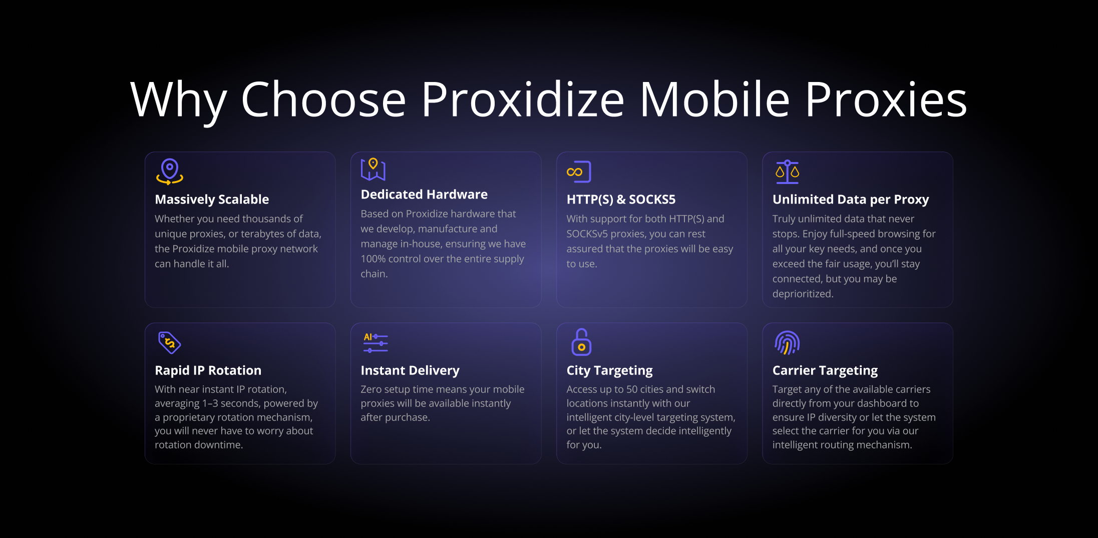 Proxidize delivers consistently stable mobile proxies with excellent speed and uptime, which is crucial from API testing, automation workflows, and multi-region QA checks. The dashboard is intuitive, and the ability to control devices, sessions, and rotation rules without touching complex networking configs is huge win. As a developer, i appreciate how quickly i can deploy a full proxy setup without relying on DevOps or IT, saving hours each week. Review collected by and hosted on G2.com.