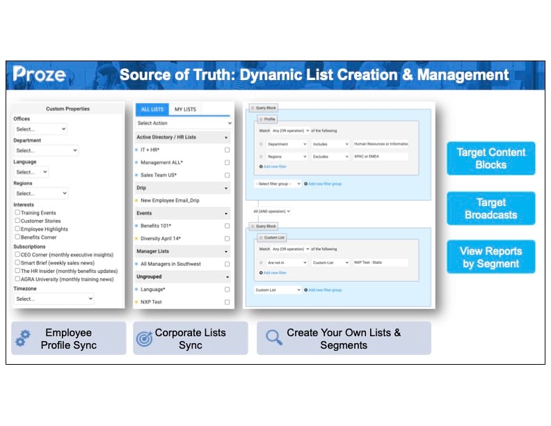 With Proze, you are able to target specific content to the exact targeted audience all within the same email without managing lists.