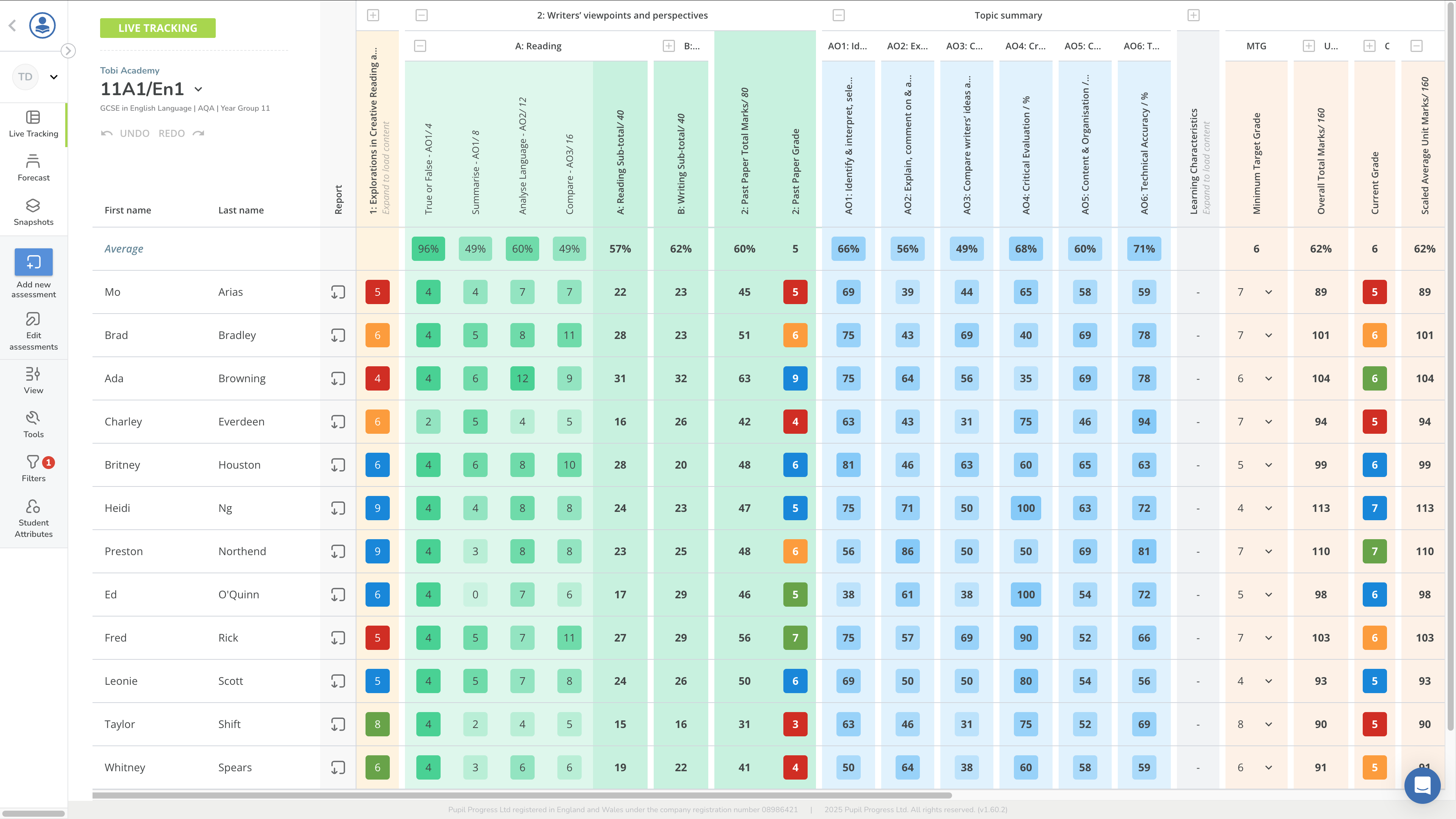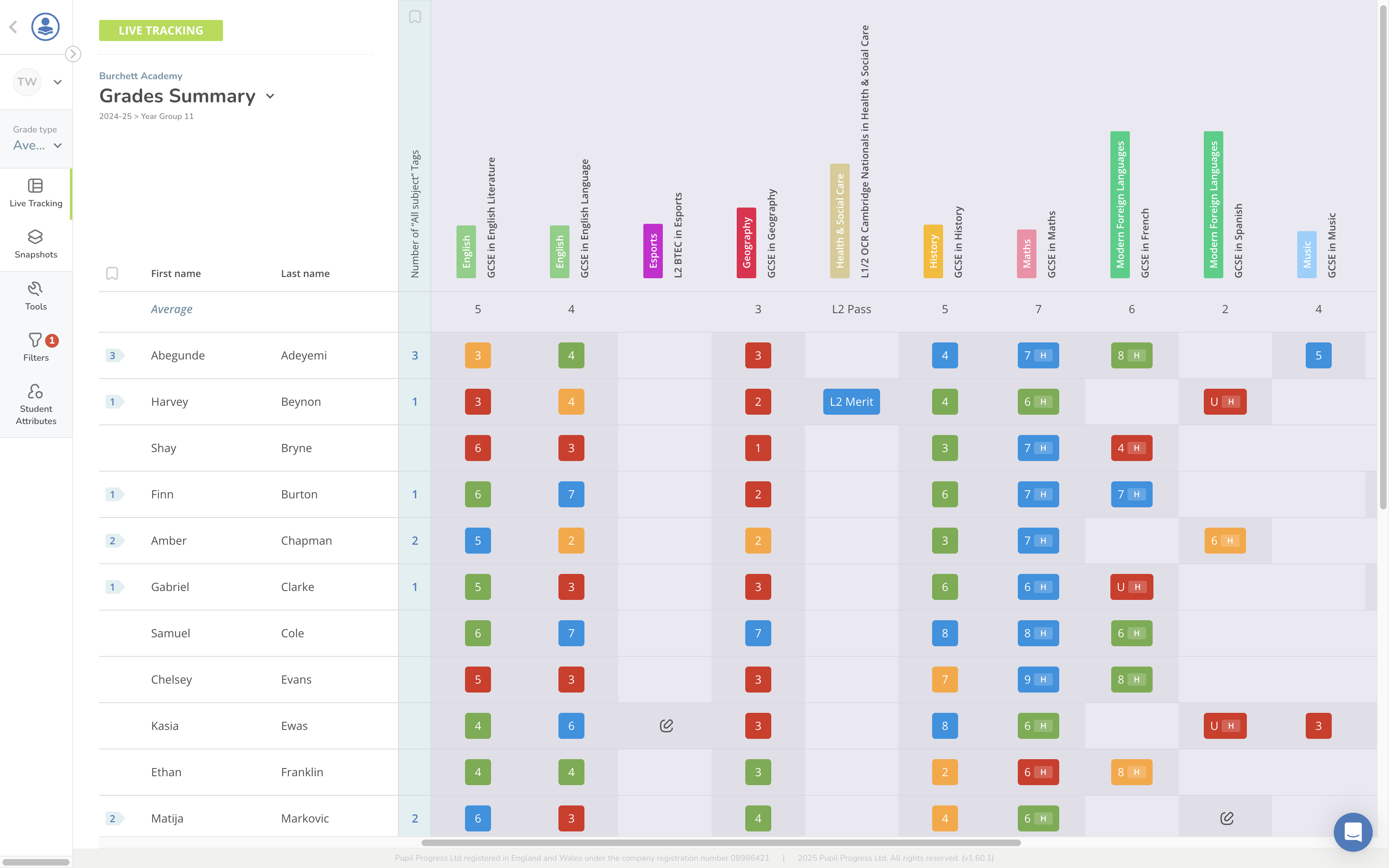 I absolutely love the colour coding for the grades as it gives a visual outlook on the data too.