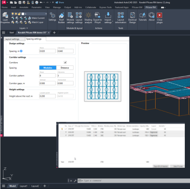 PVcase Roof Mount’s standout capability is the 3D Roof Preparation, allowing designers to model rooftops accurately, consider obstacles, and define offset zones for optimal module placement. This precision is vital for complex roof scenarios, maximizing energy yield and performance.