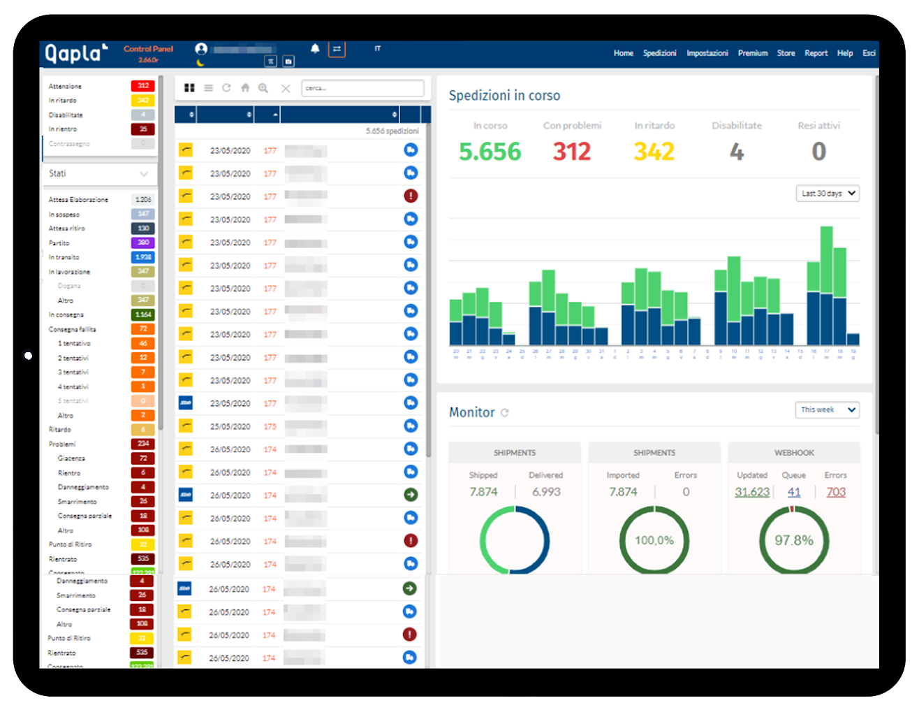 With Qapla’, you can keep track of up to 450 couriers from a single interface, integrating them in just a few minutes, without the need for development and with our assistance.