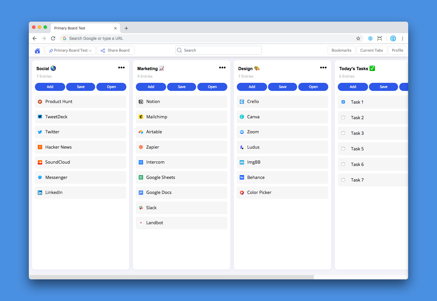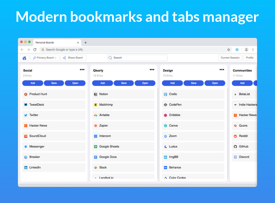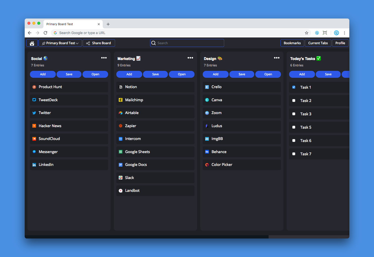 Being able to see bookmarks organized by columns is amazing. They're already expanded so it only takes a quick glance to find what I'm looking for. Review collected by and hosted on G2.com.