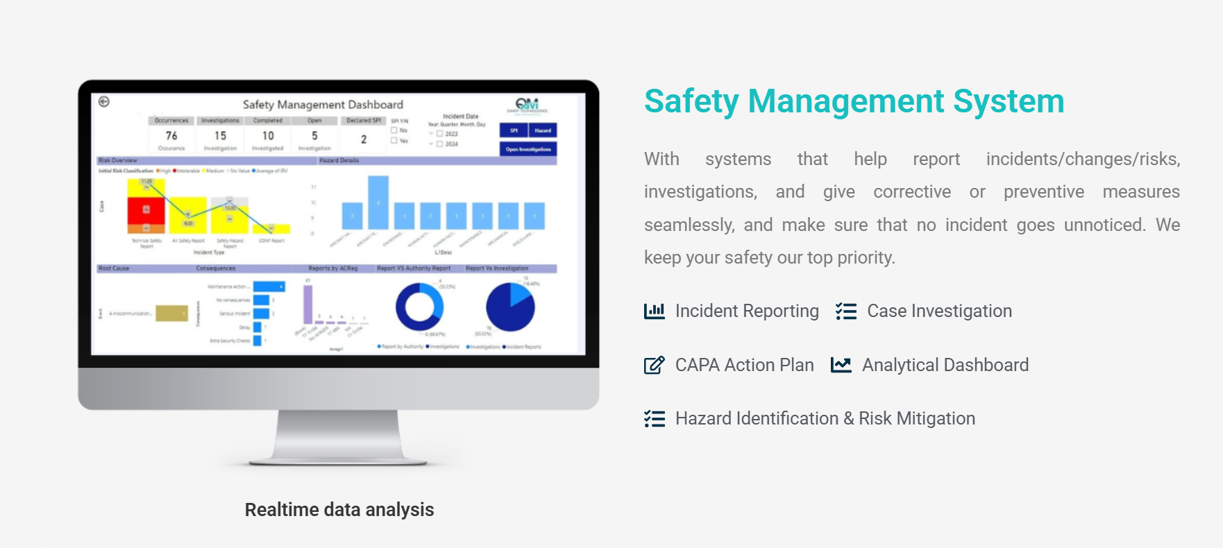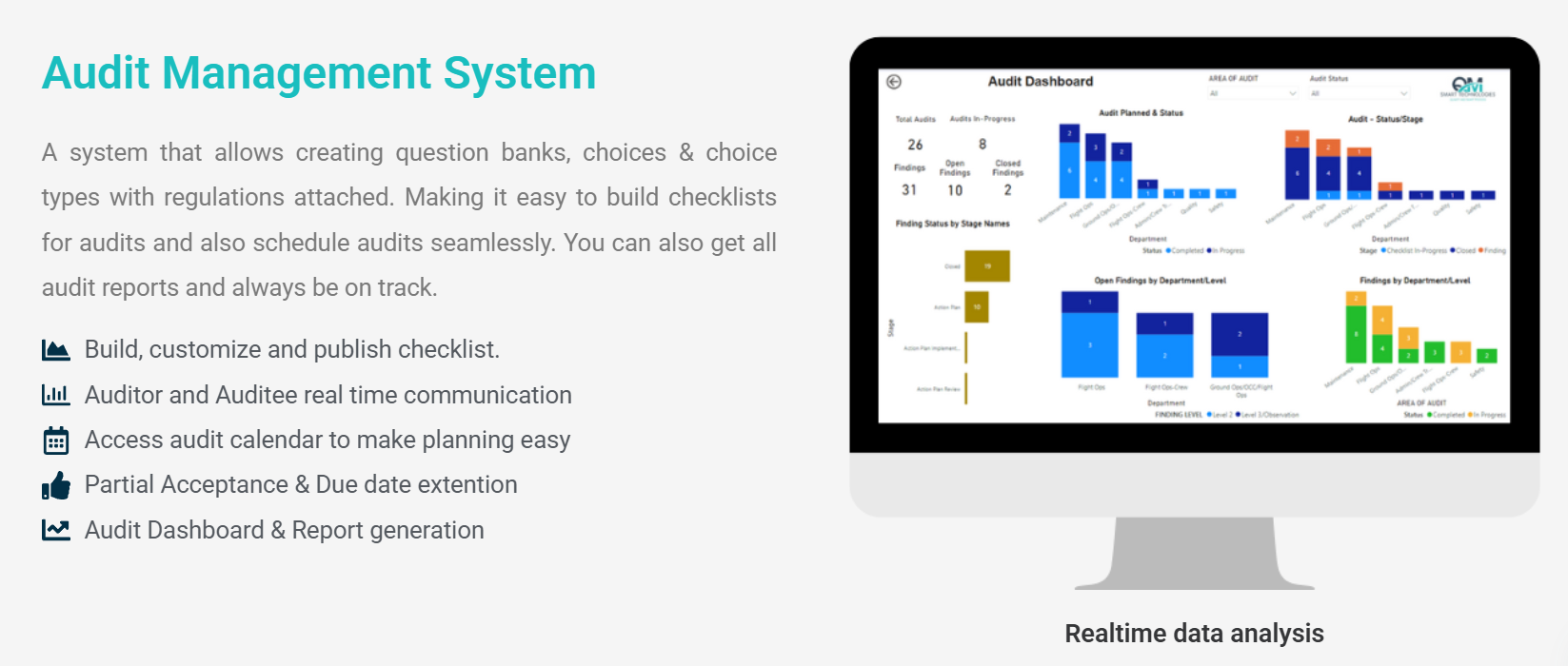 Q5SMS is a safety and quality management systems deployed at large and small organization all over the world. Can be deployed on your servers or in the Q5 data centers. can be deployed on your servers or in the Q5 data centers. safety and quality management systems deployed at large and small organization all over the world. can be deployed on your servers of in the Q5 data centers. Modules included in Q5SMS are: audit, inspection, corrective/preventative actions, incident reporting, risk management, skills management and business intelligence and associated work flow processes. Industry sectors include: CAA, Airports, Air Nav Services, Airlines, GSP, Rotor and MRO. Compliance processes managed by Q5SMS include: IOSA, ISAGO, EASA, ISO, 29 CFR Part 1926, FAA, 14 CFR, Part 61, Part 91, Part 121, Part 135 - as well as your company specific requirements. Q5SMS is very flexable and can easily be configured for your operational needs. Contact Q5 to review your requirements and a no-hassel, free demo.