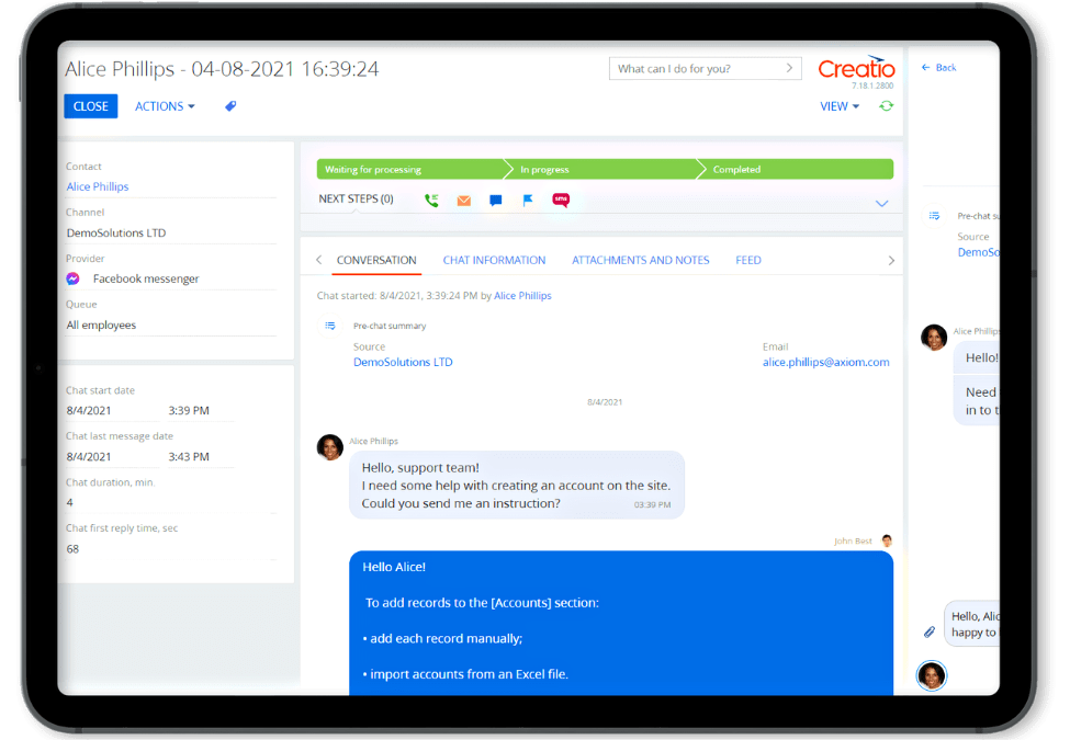 Creatio CRM- Service Enterprise