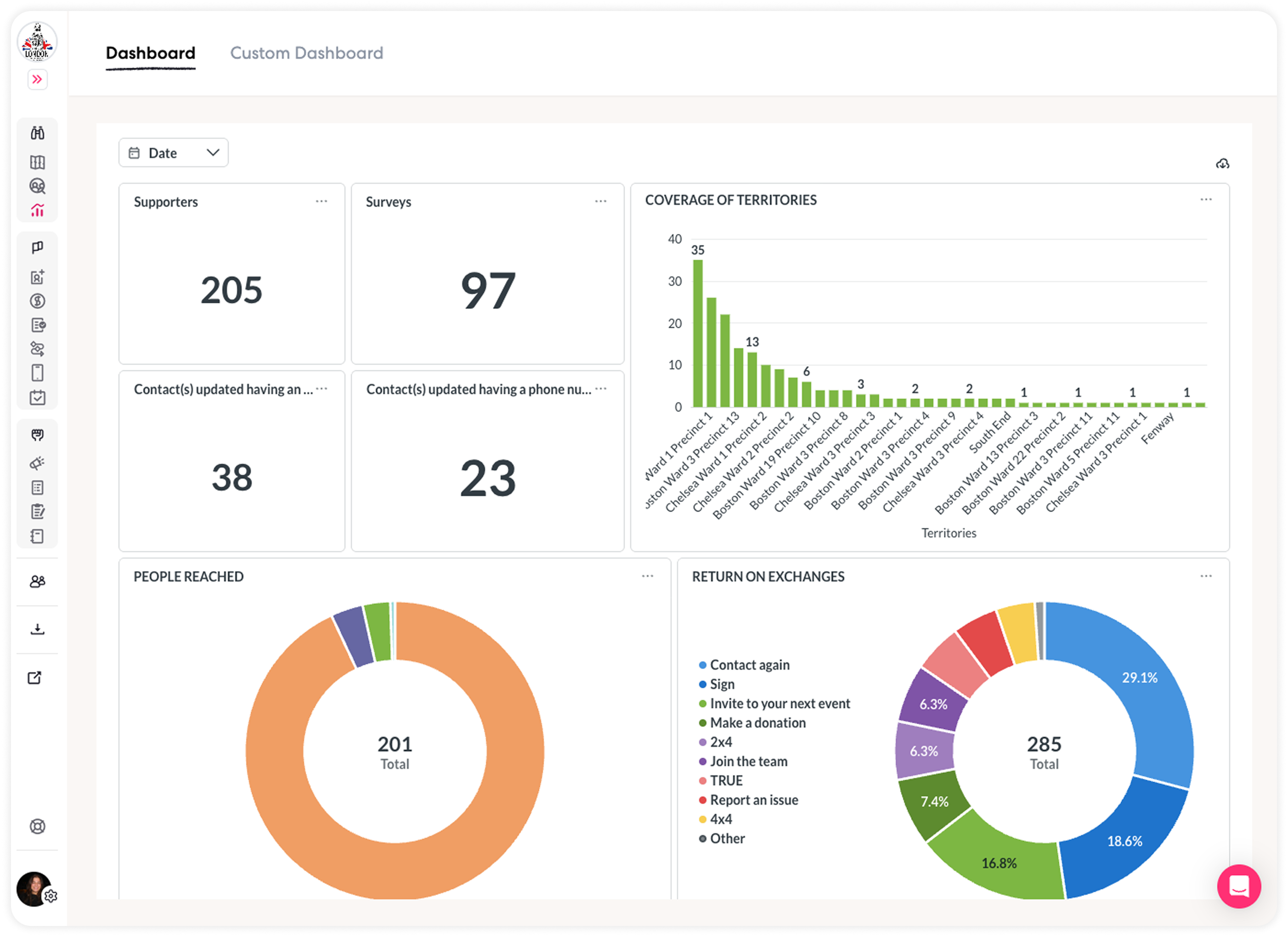 - Built-In Mobile CRM: Organize and manage supporter data within mCommons, enabling segmentation by any field or behavior for more relevant and effective campaigns.