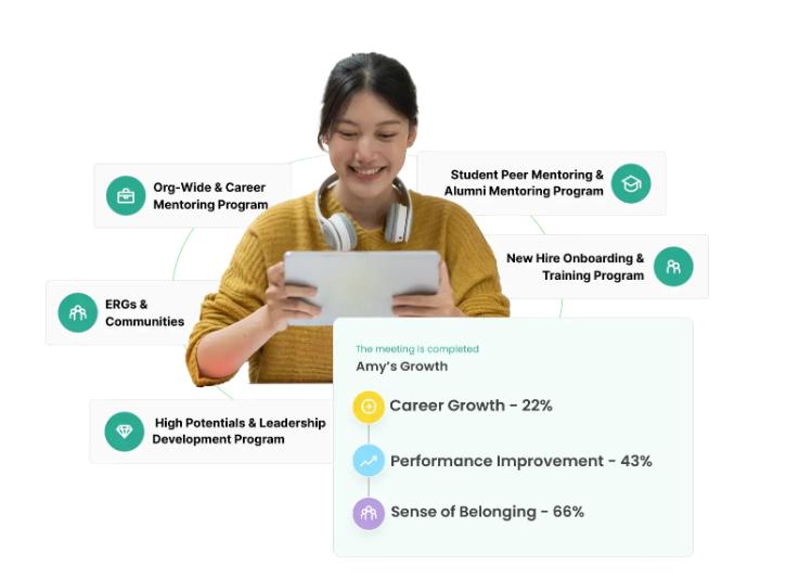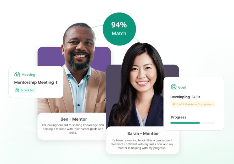 At the same time, built-in analytics and ROI dashboards give leaders visibility into participation, engagement, and outcomes — making it easier to show the real value of mentoring and learning initiatives.