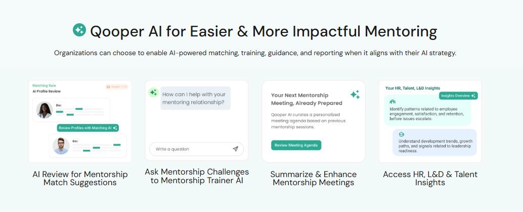 If you’re looking for a mentoring platform that combines automation, AI guidance, and measurable results, Qooper provides a practical, scalable way to grow people development programs with confidence.
