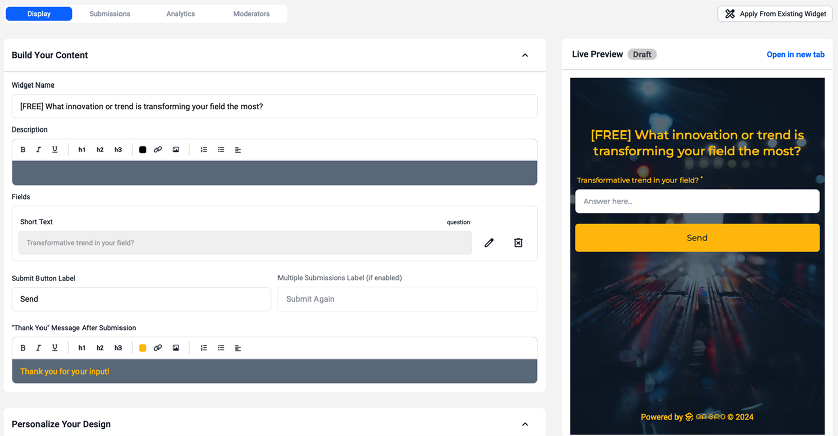 "Very handy and easy to use tool for engaging your users."