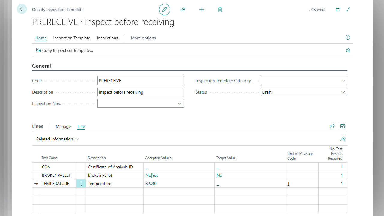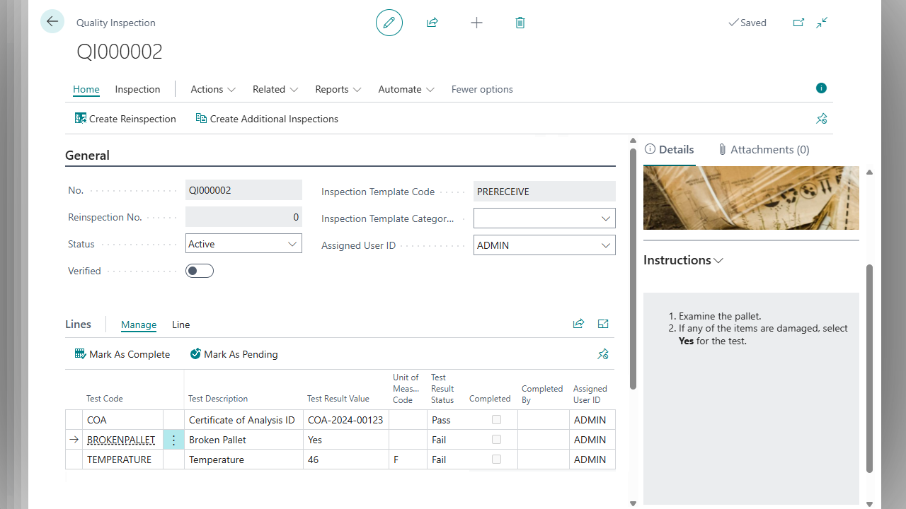 -Easy Navigation: Access a quality inspector role center that offers a comprehensive overview of active inspections, including tests assigned to you, those due today, and any overdue tasks. Quickly navigate to tests requiring immediate attention.